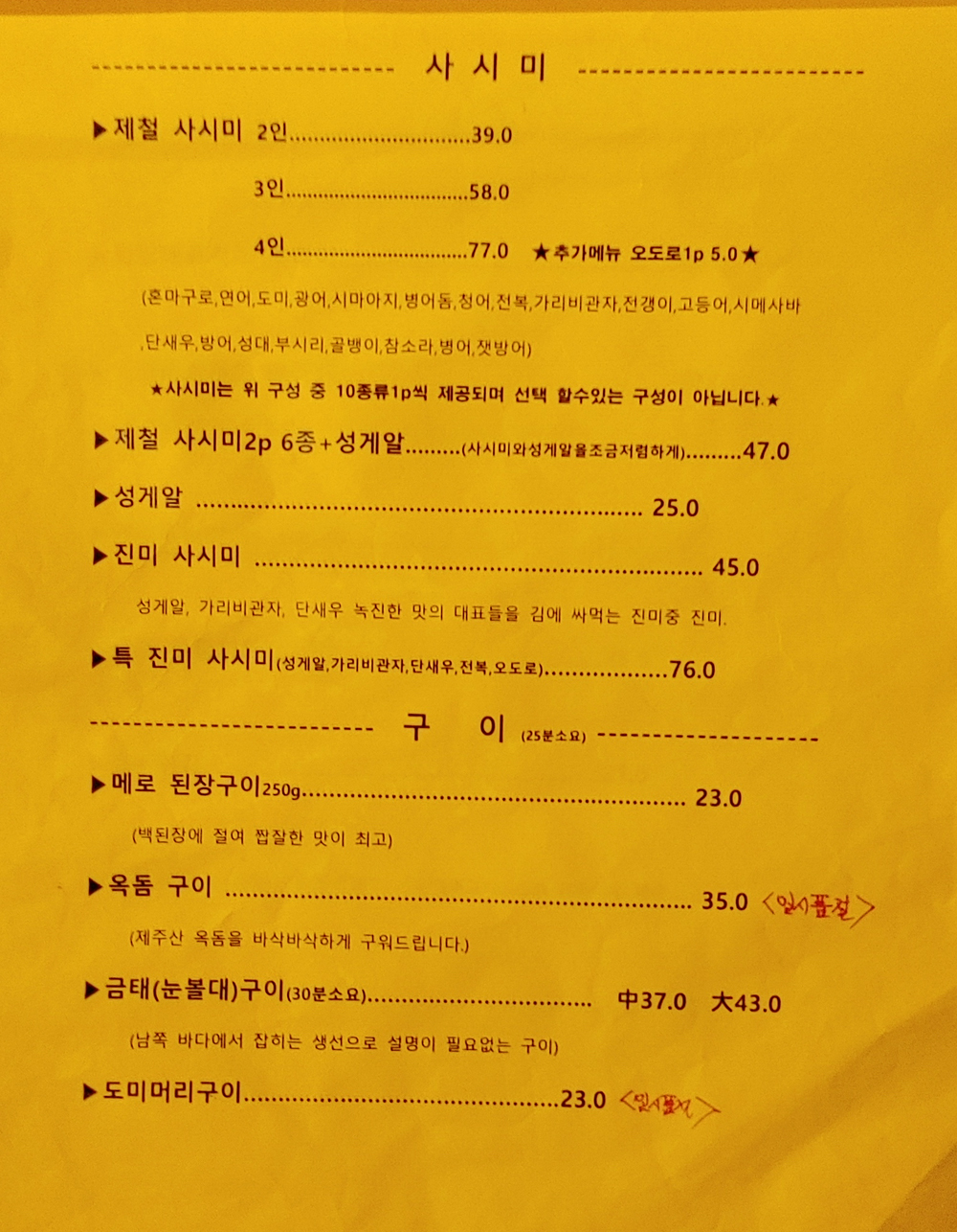 좋은 분위기의 실내, 그리고 부드러복 고소한 사시미와 금태구이로 즐거운 시간을 보냈네요.