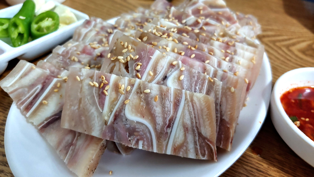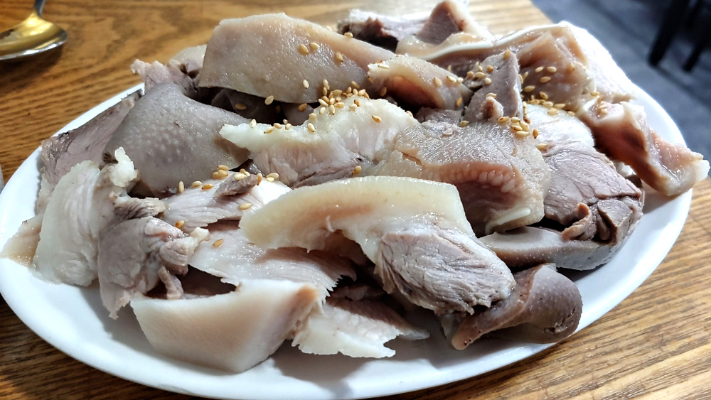 망원동의 오랜 맛집 소문난순대국왕족발 식당의 편육과 머릿고기입니다.