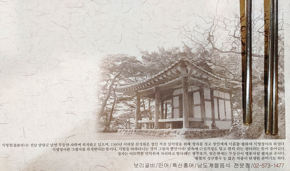 양재시민의숲역에서 가까운 남도계절음식 전문점 식영정의 민어탕 메뉴입니다.