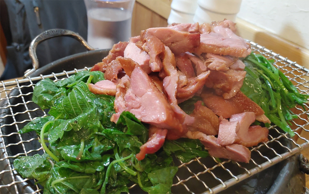 훈제오리를 계속해서 따듯하게 온도를 유디하면서 먹을 수 있는 요리입니다.