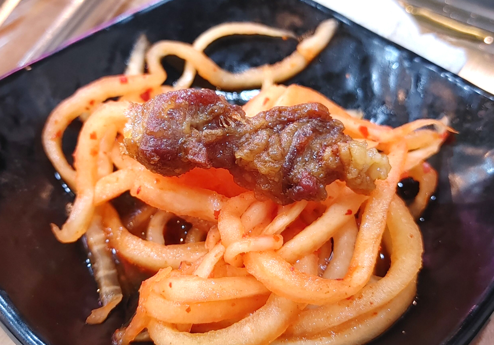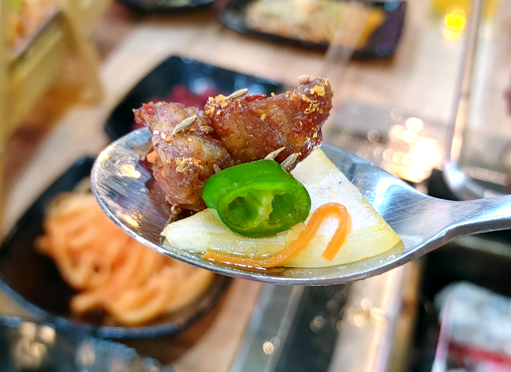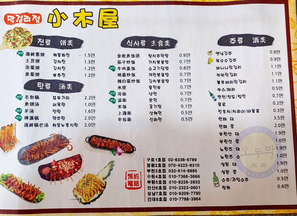 매운왕양꼬치와 마법실감자무침은 별미입니다.