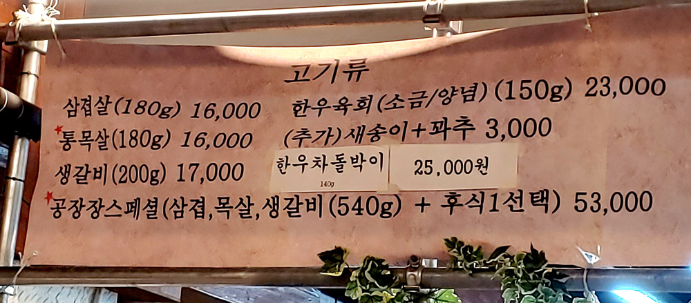 삼겹살+목살+생갈비+식사메뉴가 포함된 스페셜 메뉴입니다.