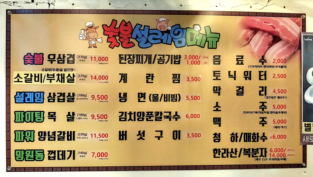 망원역에서 망리단길을 산책하다보면 나오는 망원동 고기맛집 숯불설레임입니다.