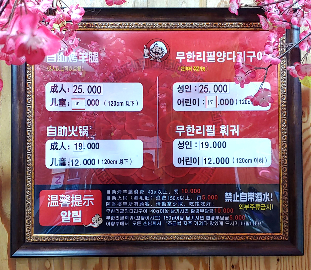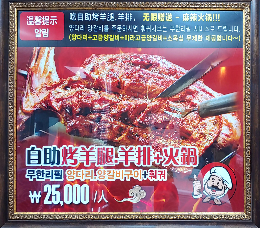 25,000원 양갈비 무한리필을 선택하면 훠궈도 같이 무한리필! 소주가 2,500원입니다!