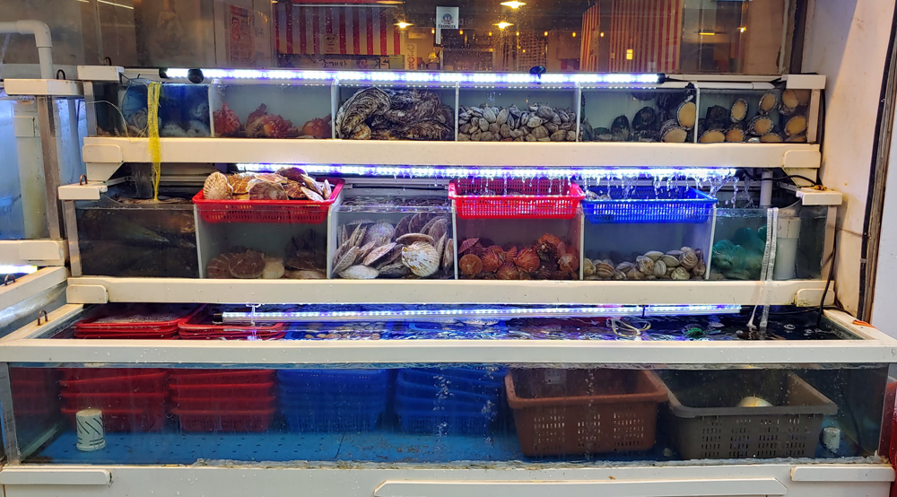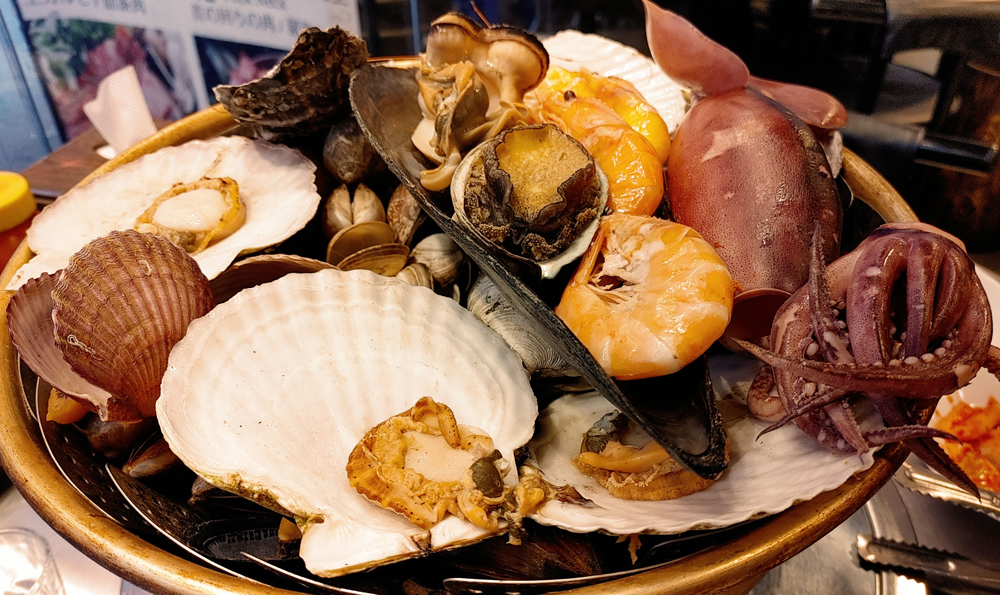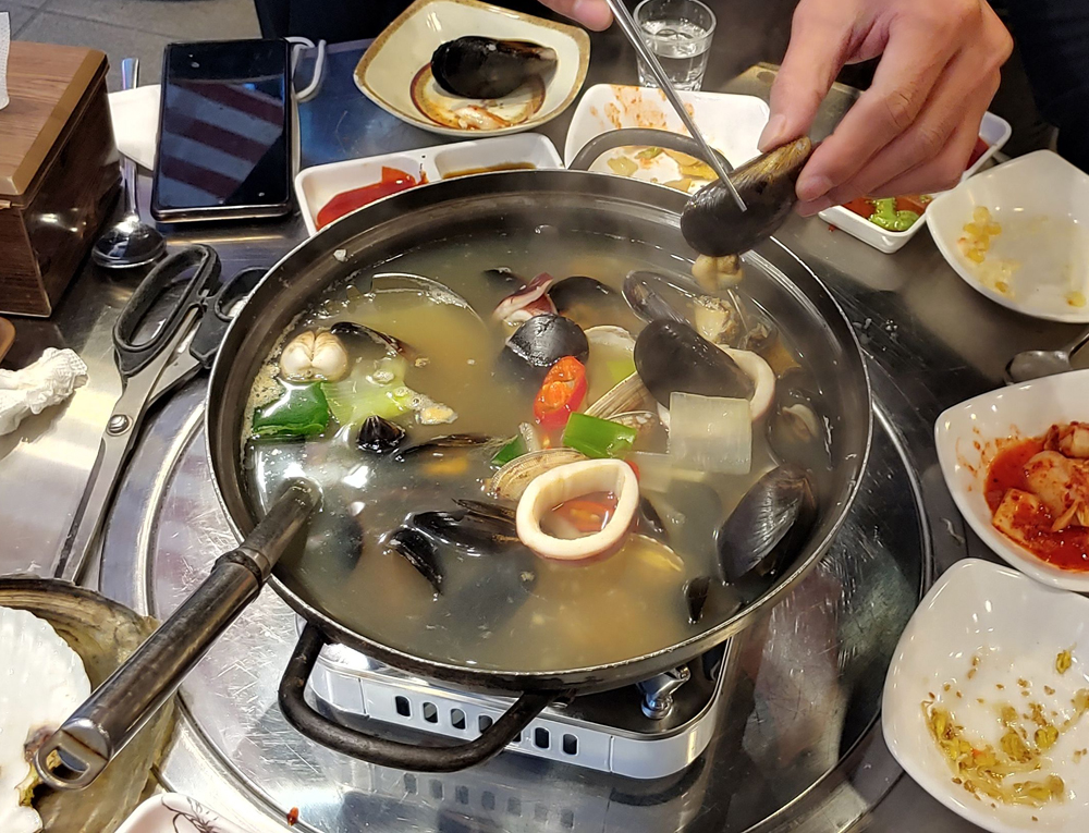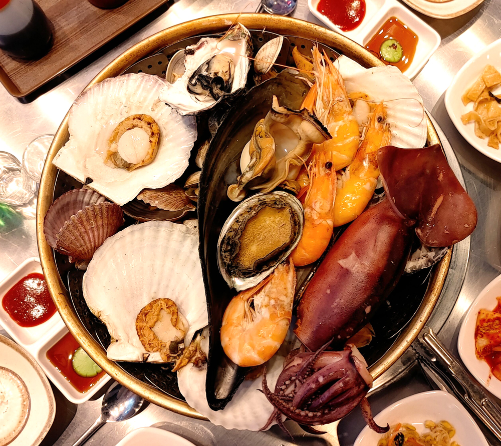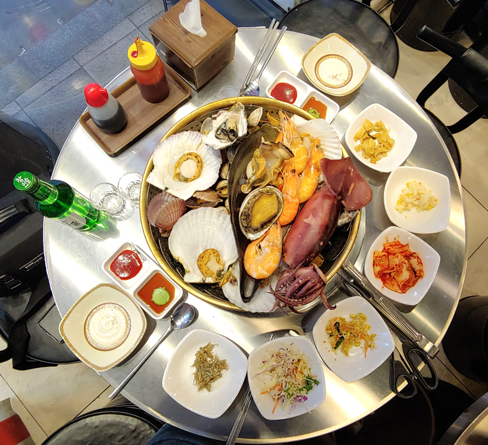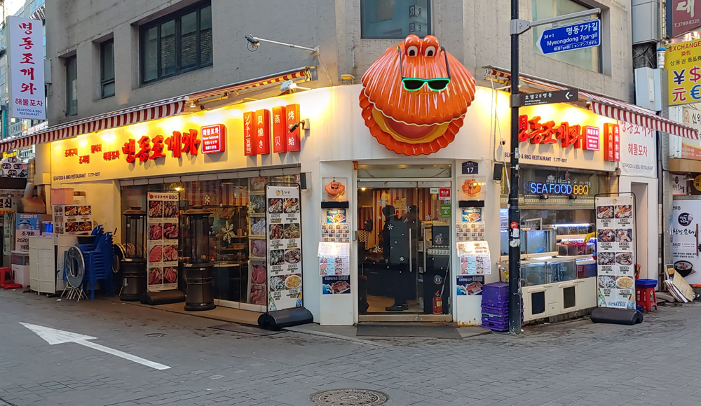 외국 관광객의 발길이 많은 명동에 있는 조개와 해물포차의 조개와 스패셜찜입니다.