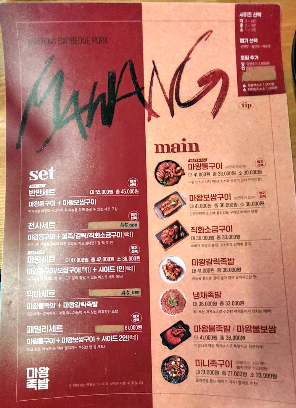 반반세트는 마왕통구이와 보쌈고기를 같이 먹을 수 있는 메뉴입니다.