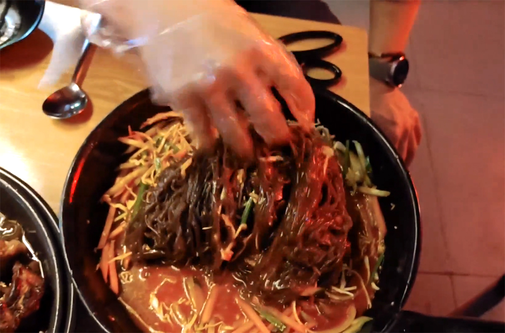마왕족발 샤로수길점의 반반세트와 쟁반국수입니다.