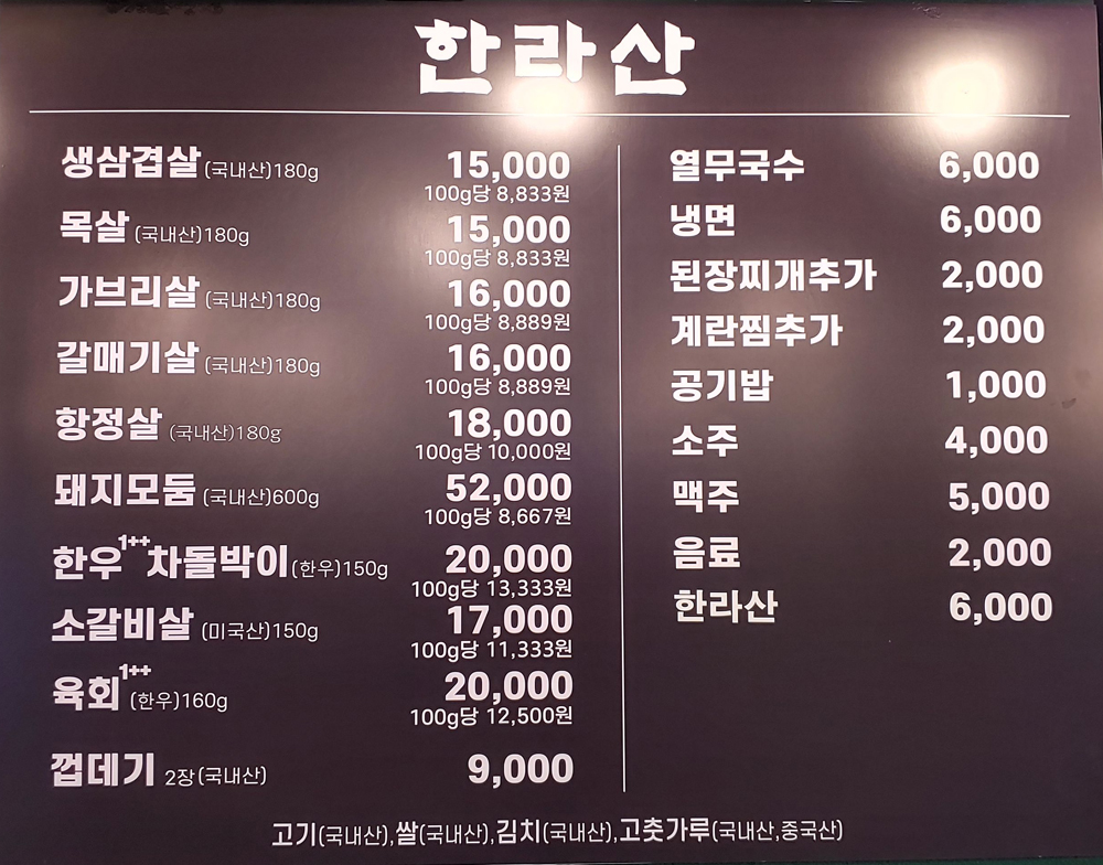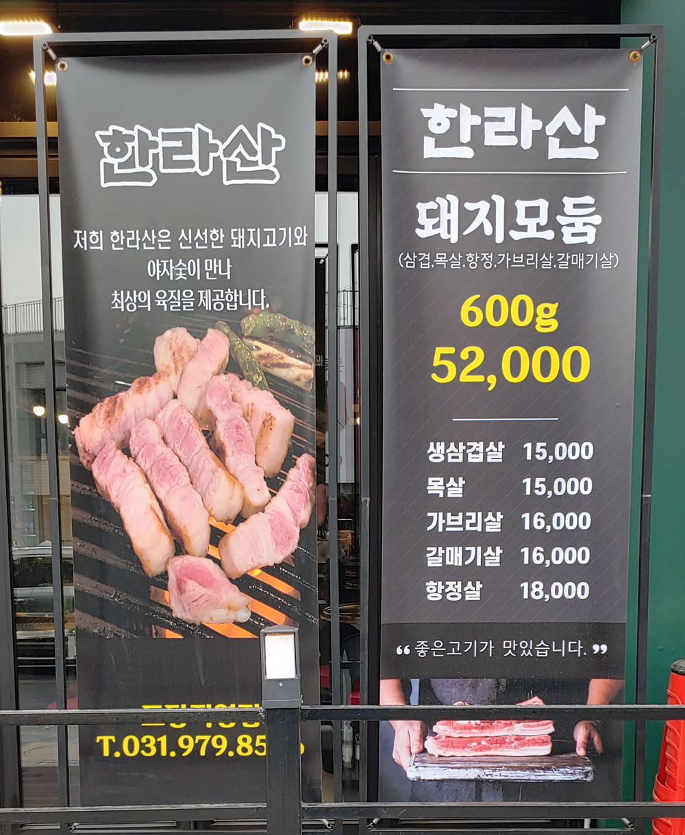 고양시 덕양구 토당동에 자리한 생고기전문점 한라산의 돼지고기 모둠 메뉴입니다.