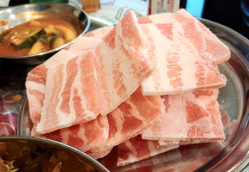 잡내 없고 고소한 냉동 삼겹살을 1인분 150그램 9,900에 맛볼 수 있습니다.