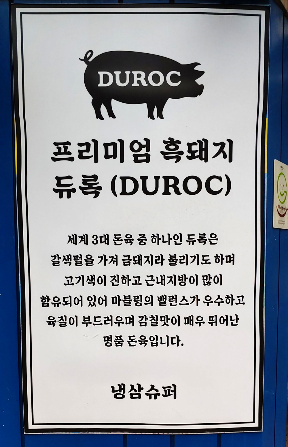 은평구 구산동에 있는 듀록 삼겹살 전문 냉삼슈퍼입니다.