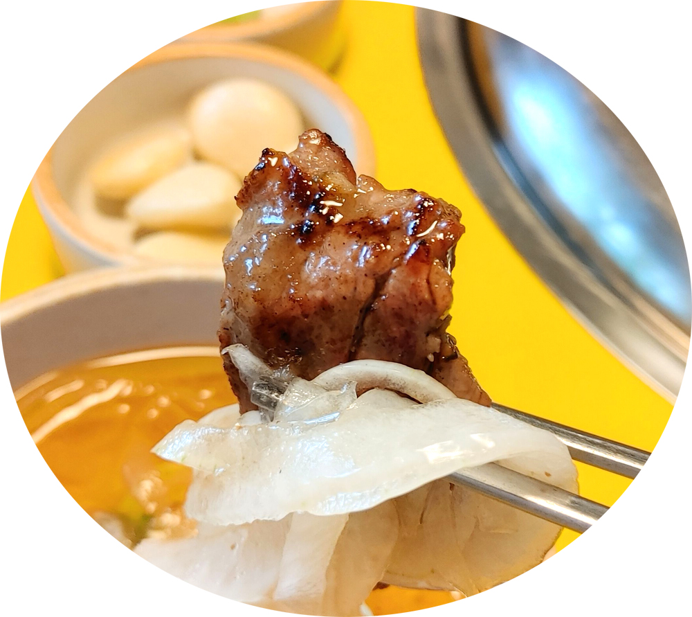 부드럽고 고소한 소갈비가 입안에서 살살 녹습니다.