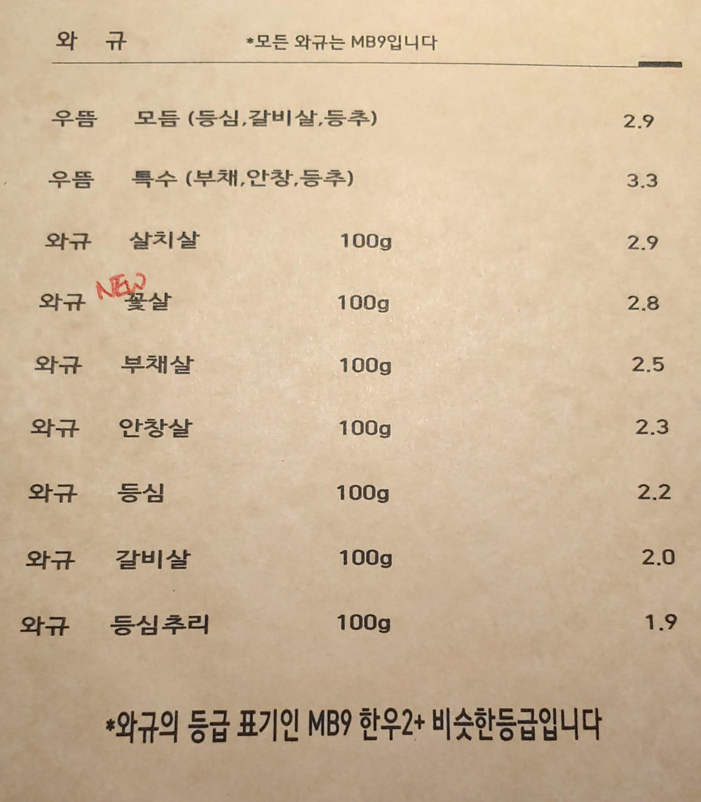 연남동 와규 전문점 우뜸의 모듬 메뉴입니다.