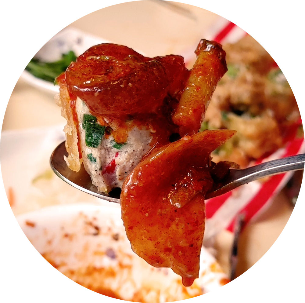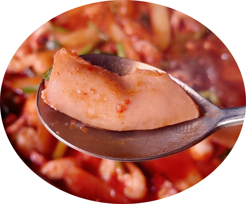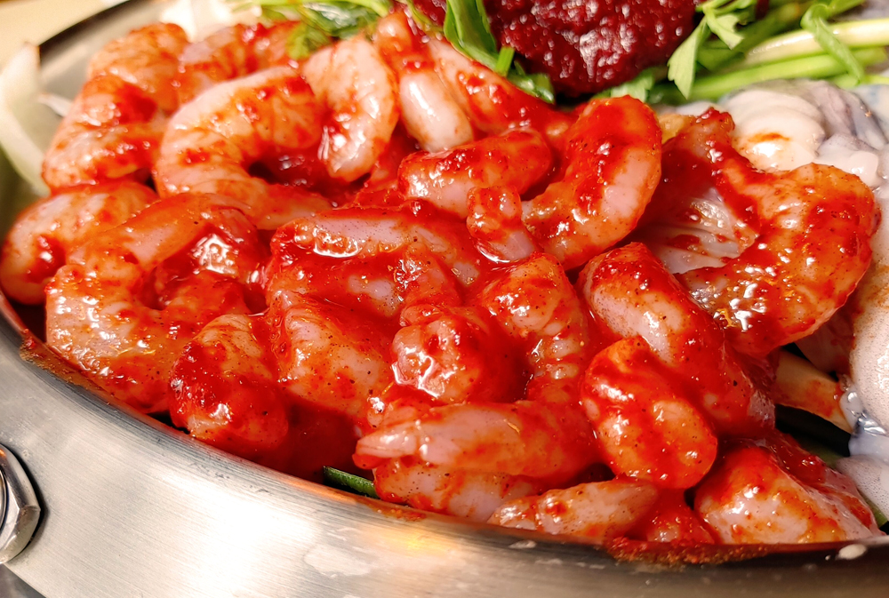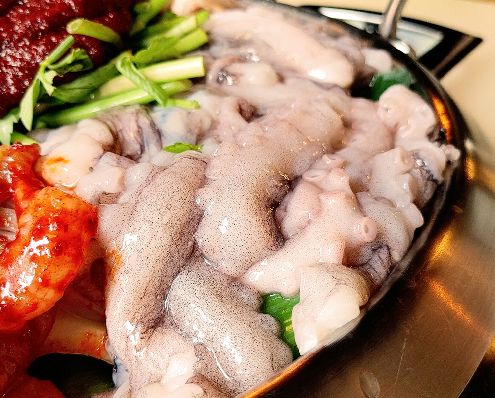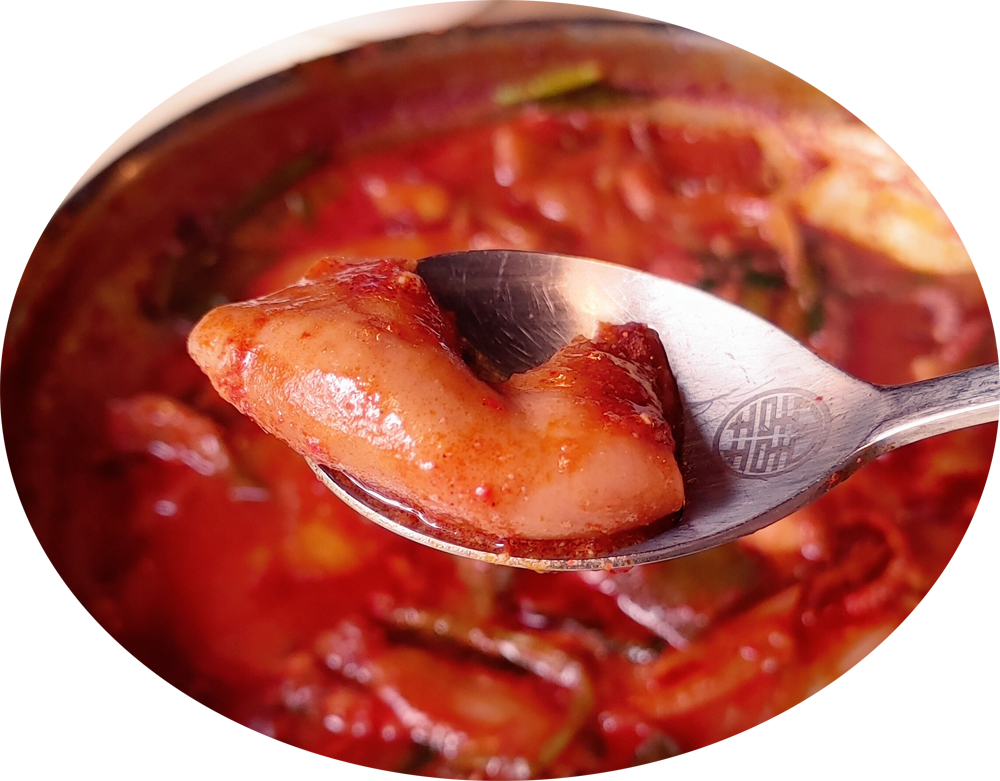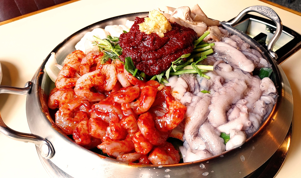 얼큰하고 달달한 떡볶이 국물의 낙곱새전골과 고추튀김 맛있습니다!