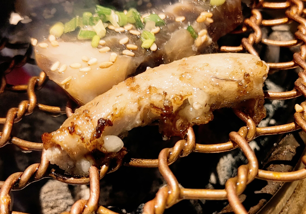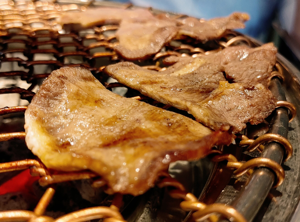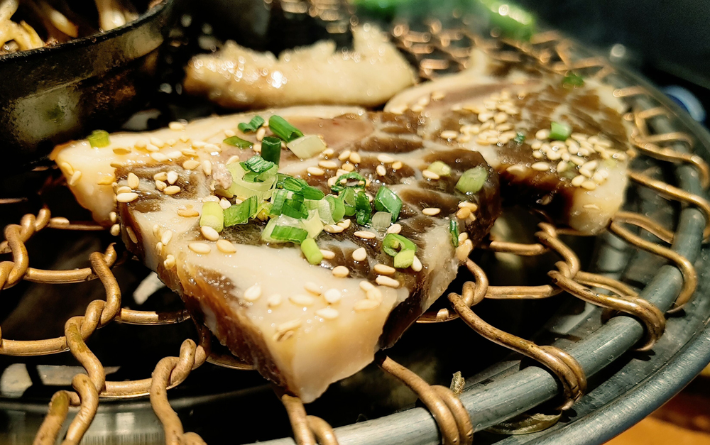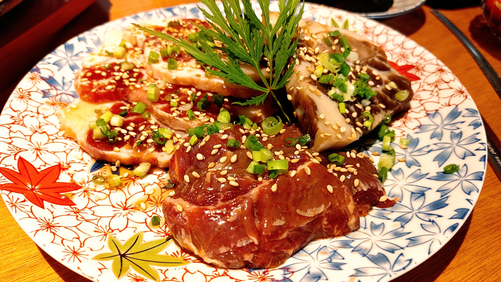 우설과 고기 3종, 호루몬 3종과 곱창나베가 나옵니다.