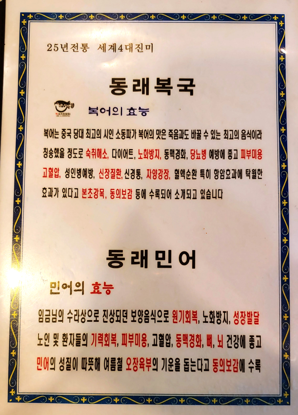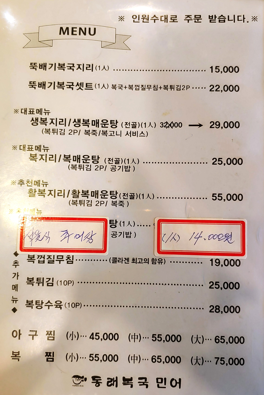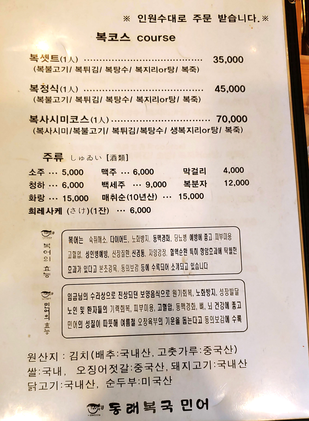 동대문역 인근에 자리한 복요리 전문점 동래복국의 복세트입니다.