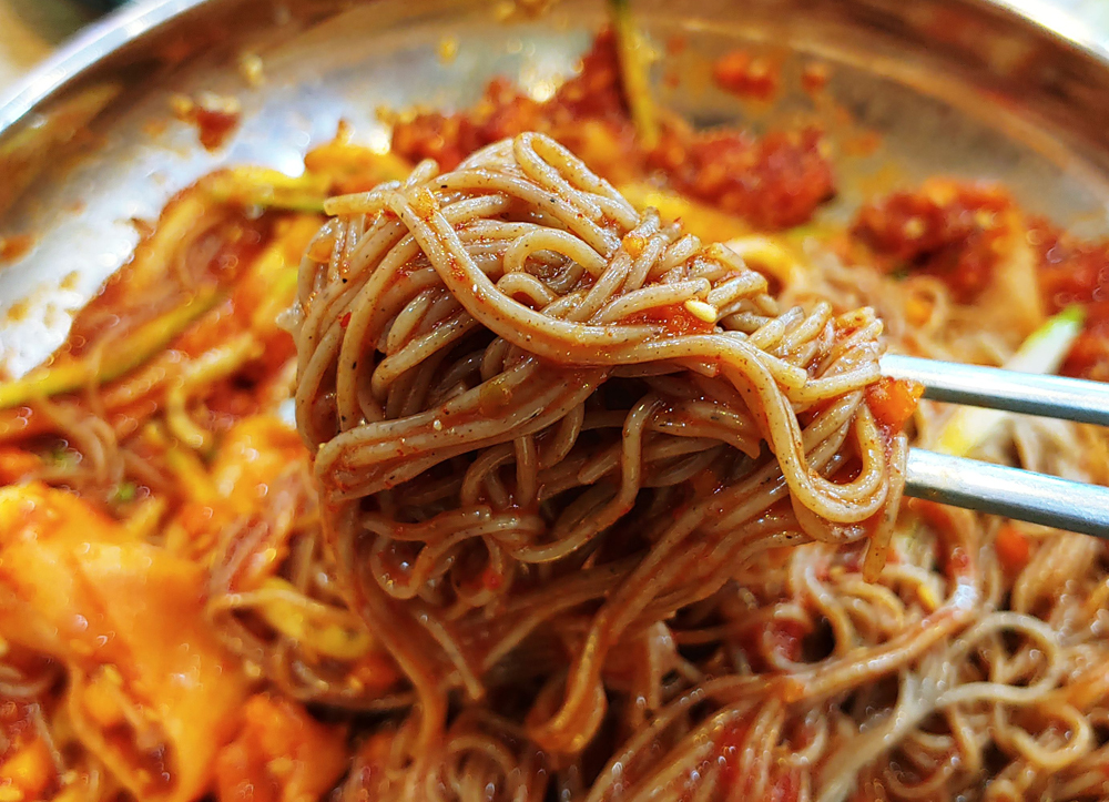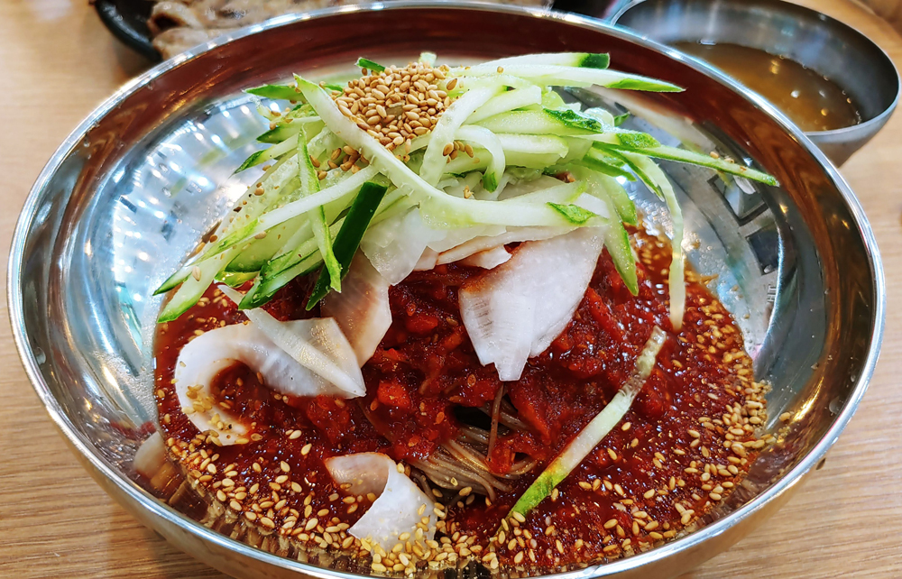냉면에 돼지 숯불고기를 푸짐하게 먹을 수 있는 곳입니다.
