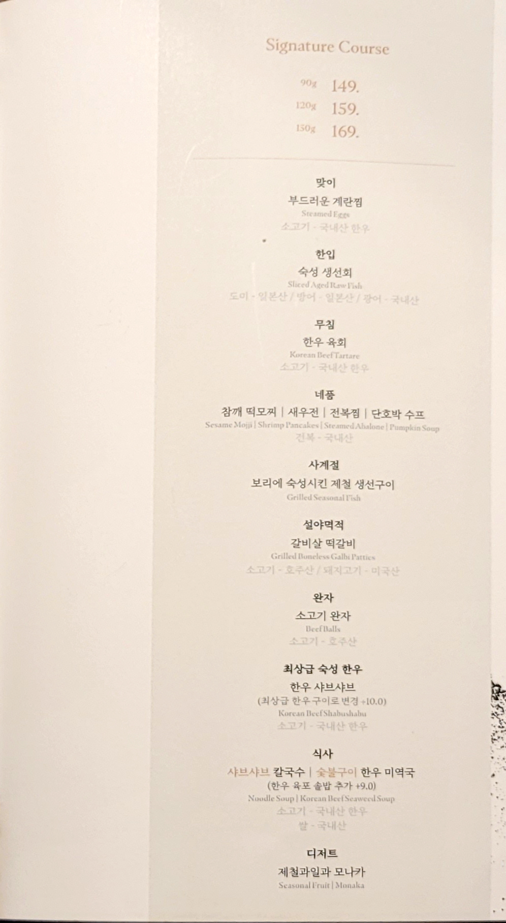 경복궁역과 안국역 사이에 있는 모도우 광화문점의 디너 시그니처 코스입니다.