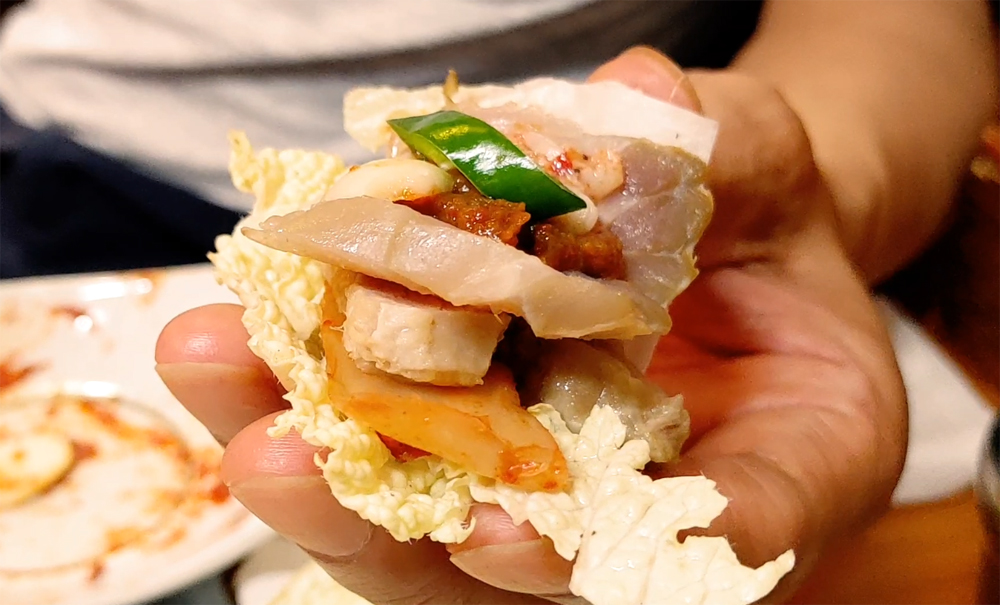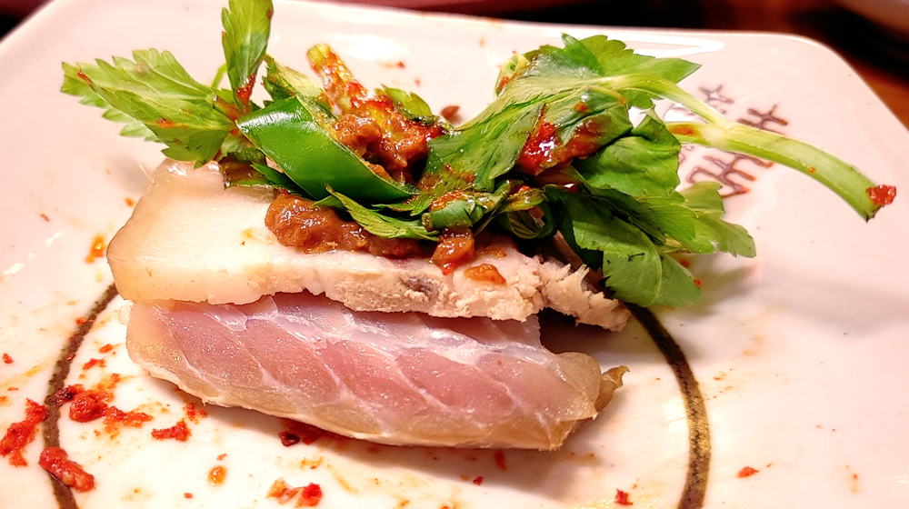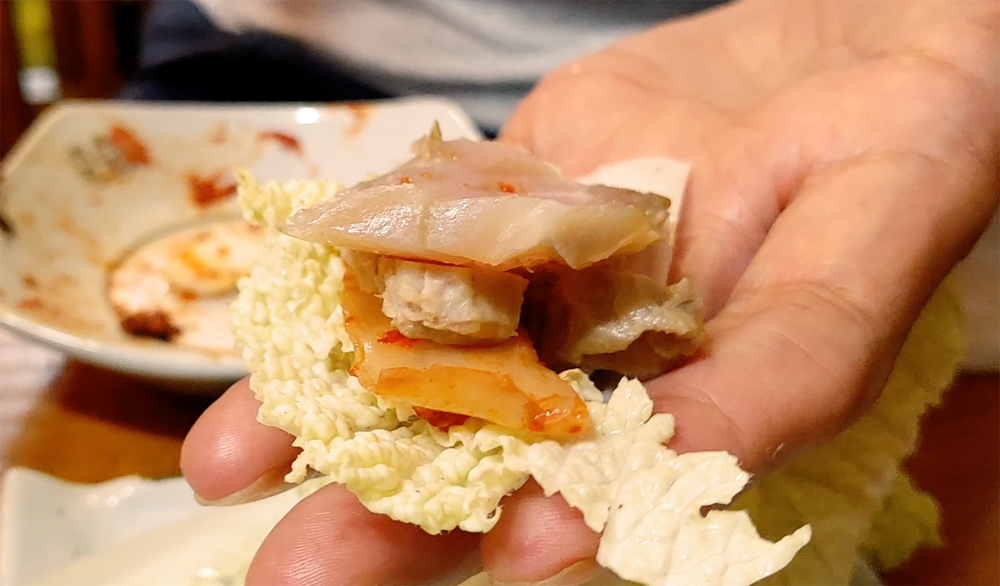 많이 삭힌 홍어는 아니지만 수육과 김치와 미나리와 함께 먹는 맛이 좋습니다.
