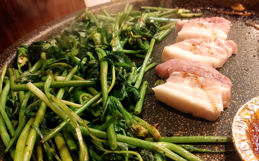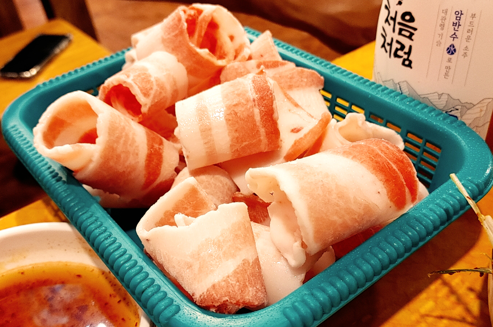 오래된 남영역의 고기 맛집 원동미나리삼겹살 식당의 대패삼겹살, 한우차돌, 생삼겹살