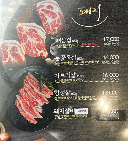 돼지고기와 한우를 판매하고 있으며, 넓고 프라이빗한 공간으로 모임이나 회식 자리에 좋겠습니다.