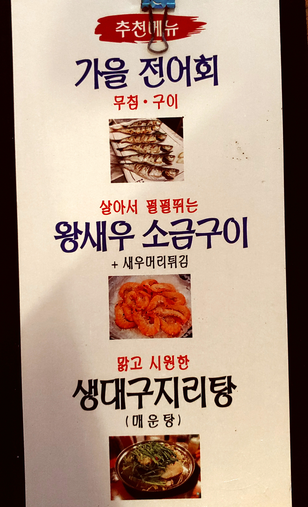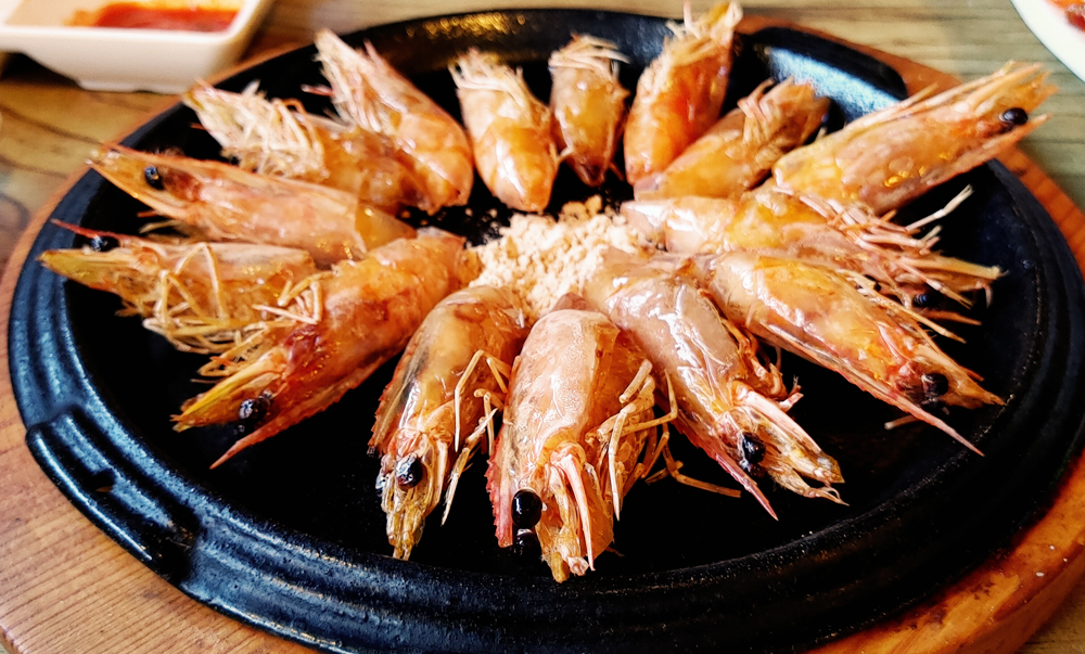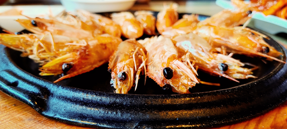고소한 왕새우소금구이와 전어회무침이 아주 맛나네요.