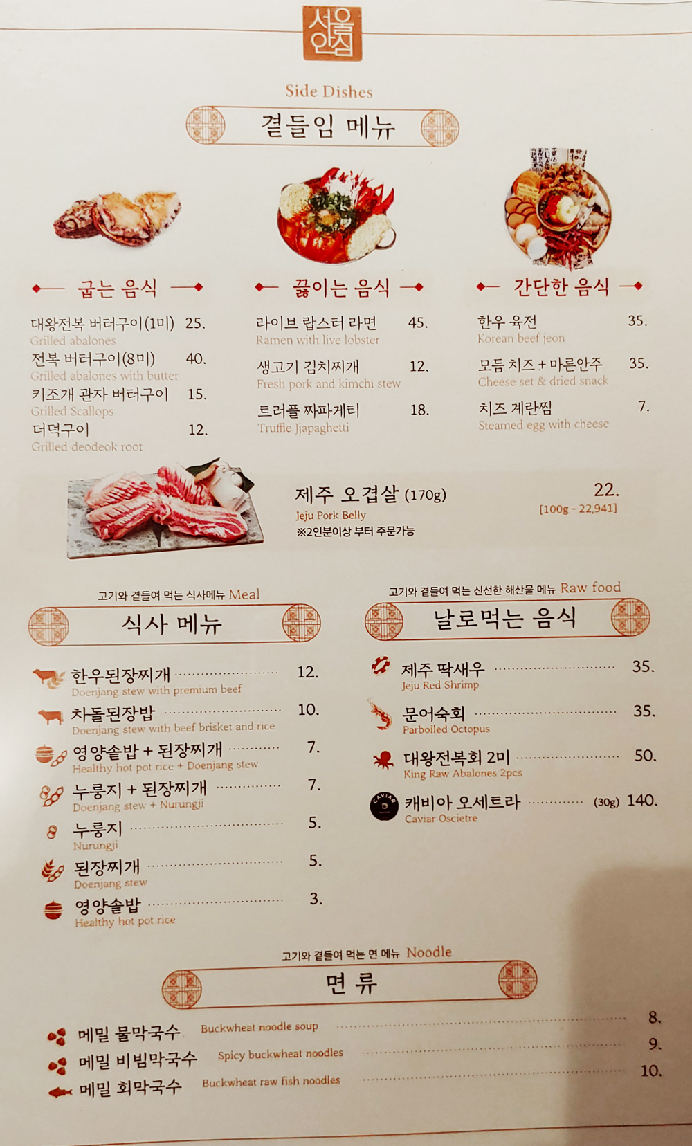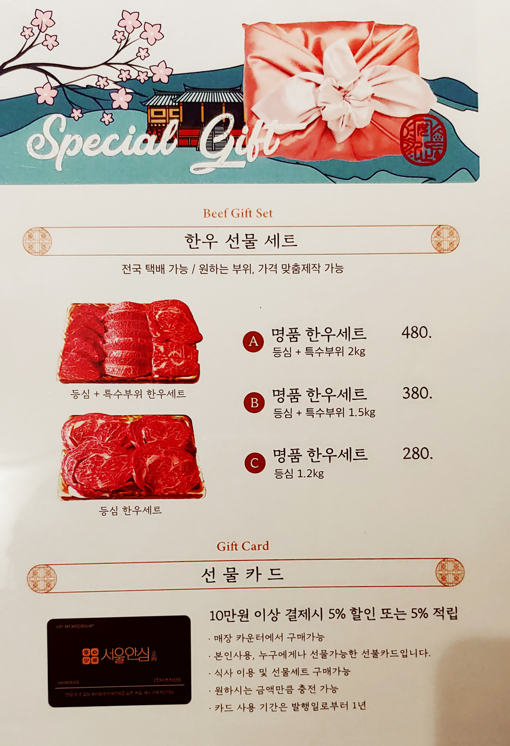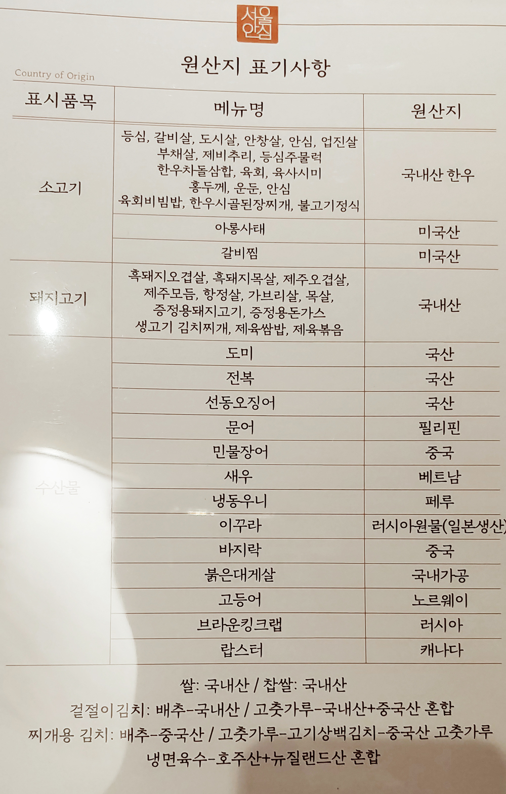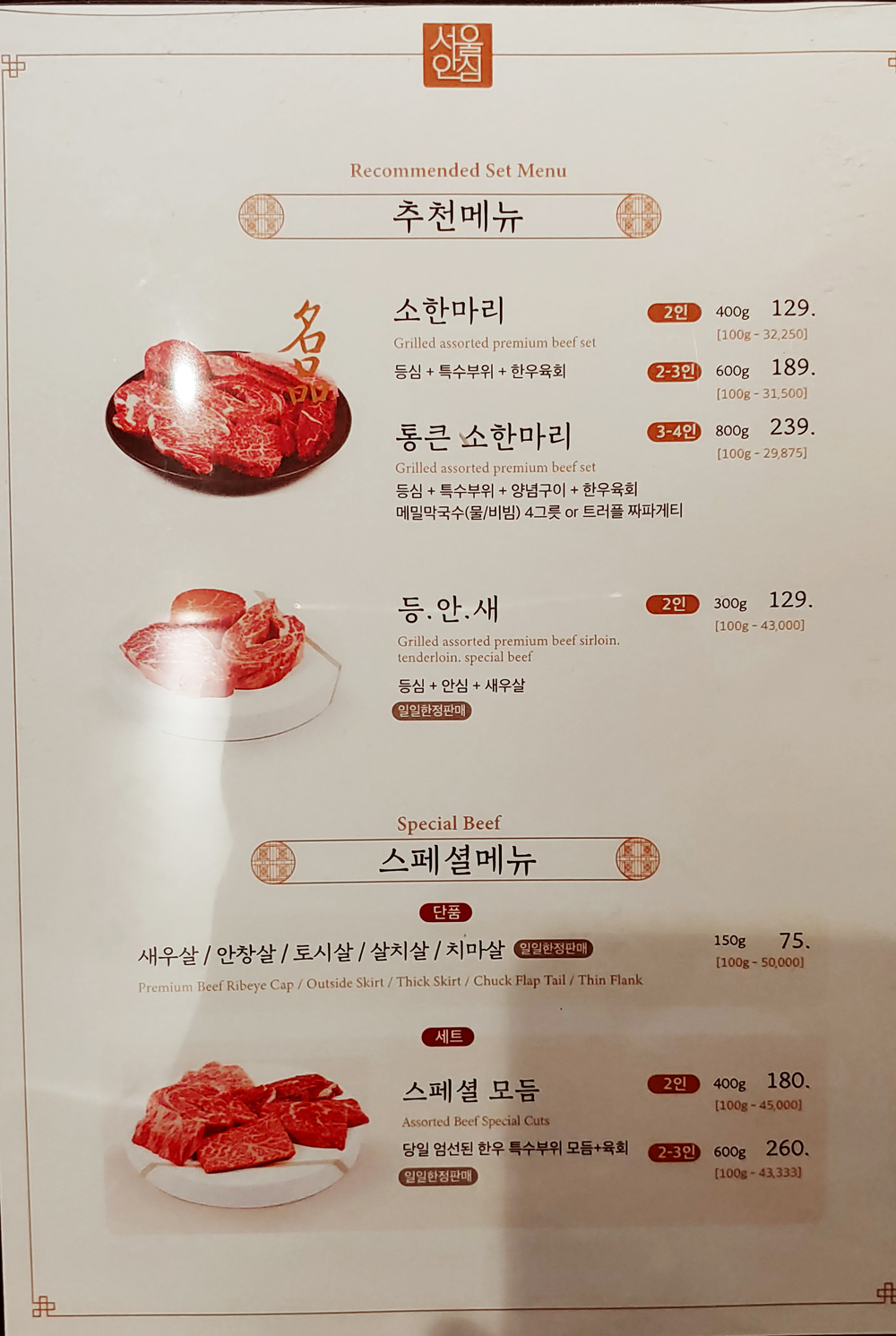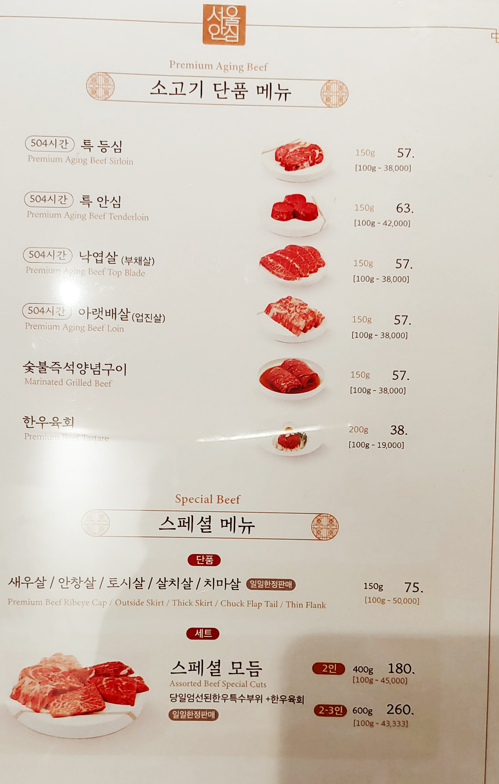 여의도 숙성 한우 맛집 서울안심정육 식당의 소한마리 메뉴입니다.