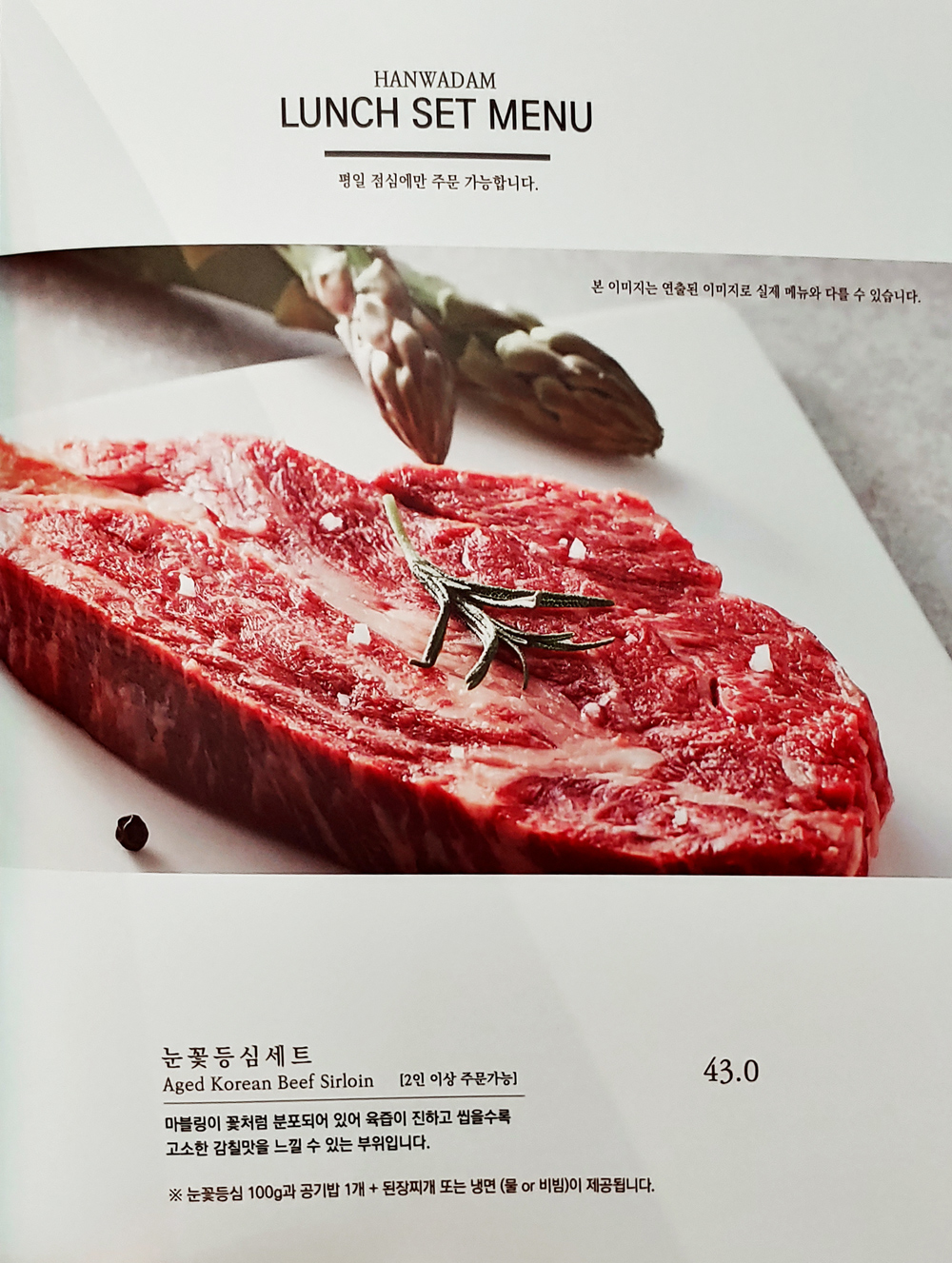 사진은 안심과 채끝, 등심과 해물된장찌개입니다.