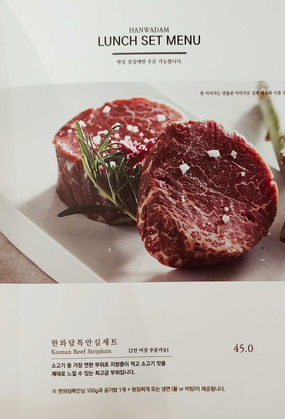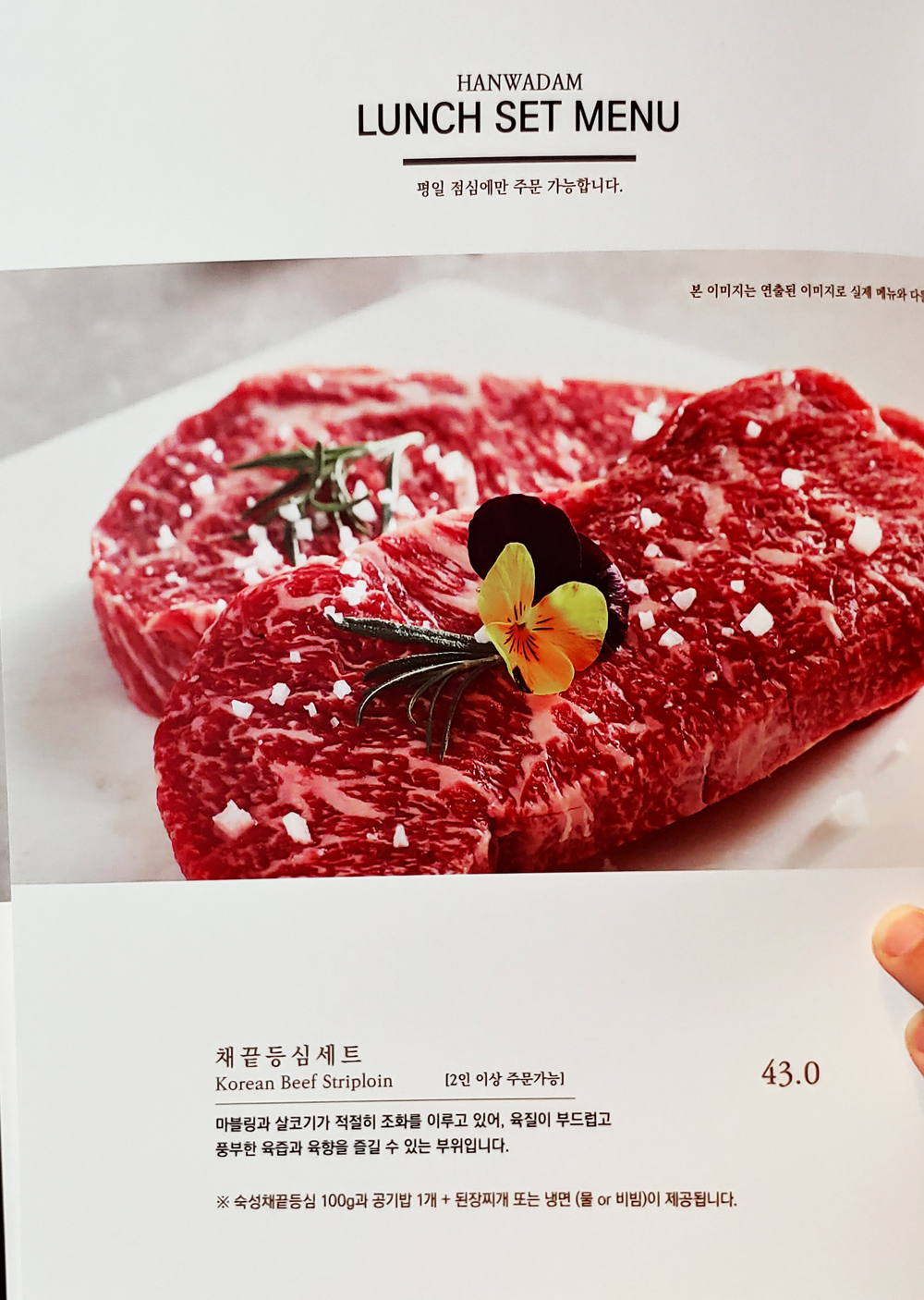 사진은 안심과 채끝, 등심과 해물된장찌개입니다.