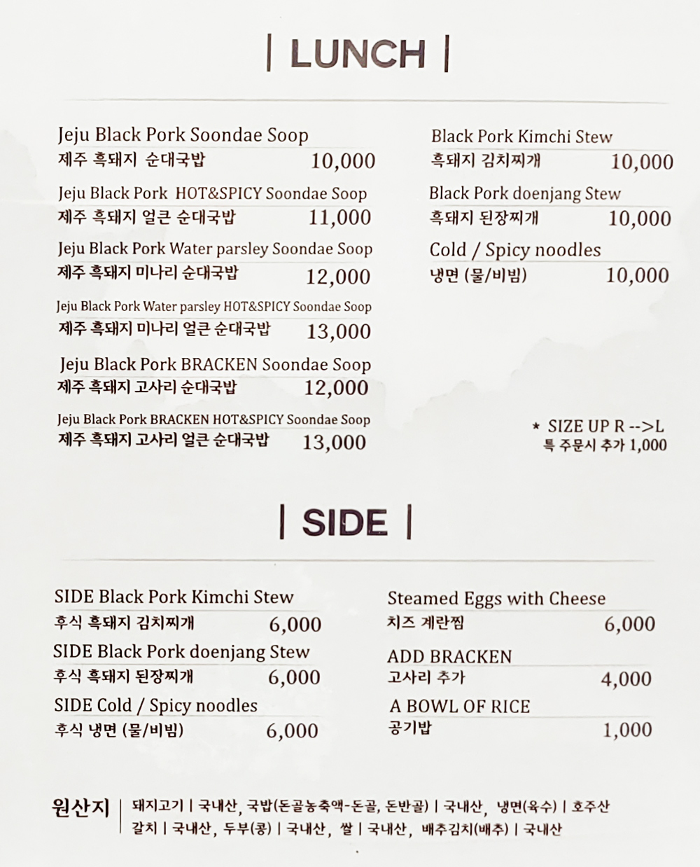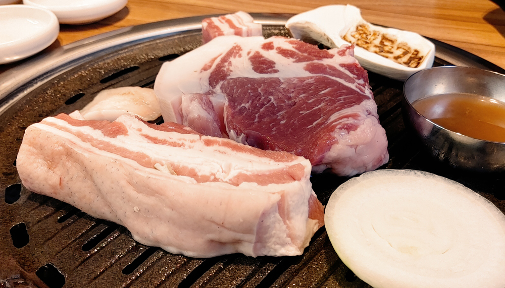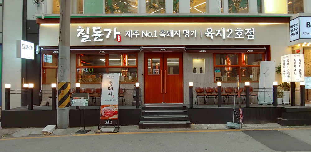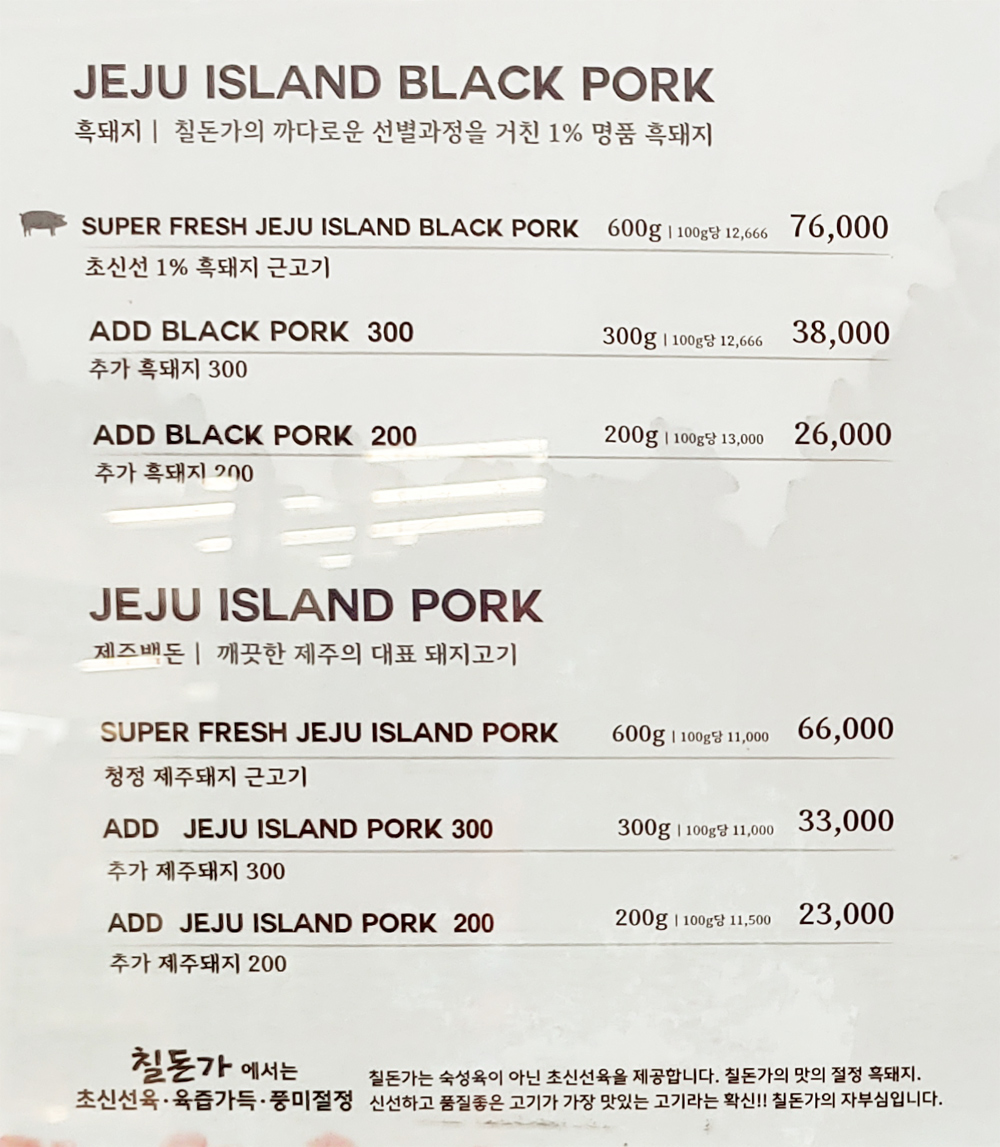 광화문 전철역과 버스 정거장에서 가까운 제주 흑돼지 전문점 칠돈가 광화문점의 흑돼지 근고기 600g입니다.