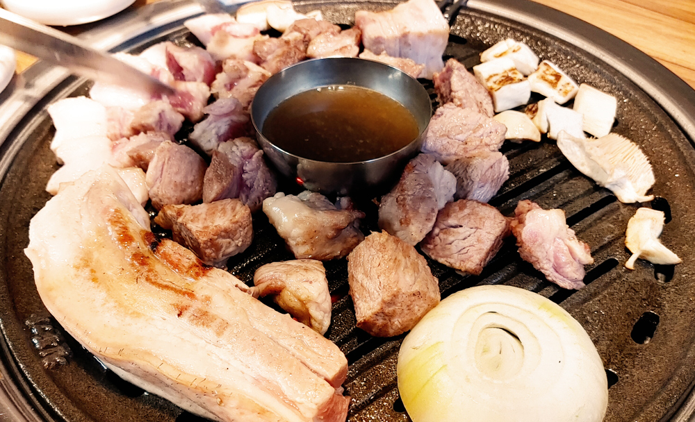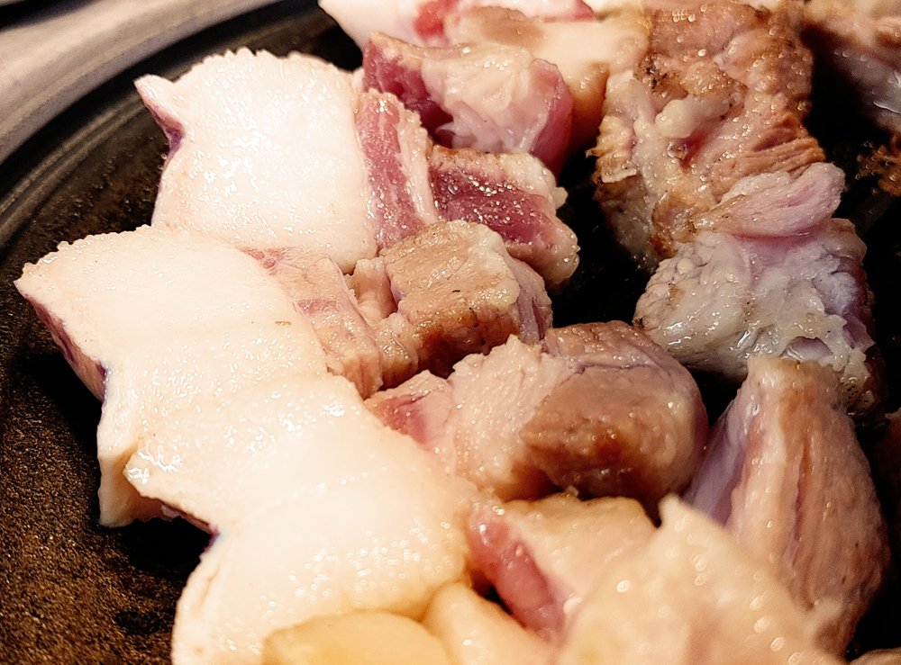 광화문 전철역과 버스 정거장에서 가까운 제주 흑돼지 전문점 칠돈가 광화문점의 흑돼지 근고기 600g입니다.