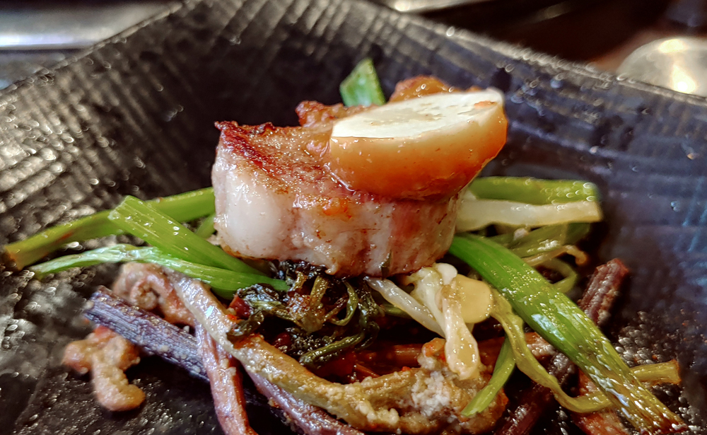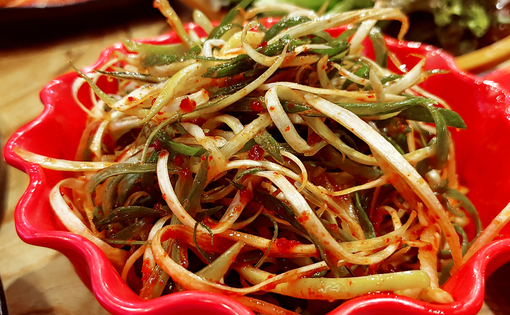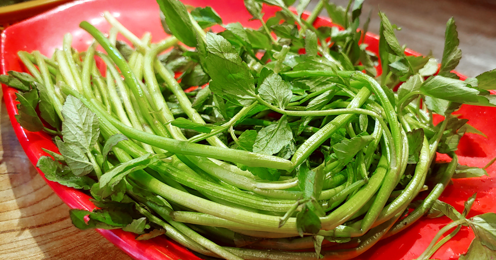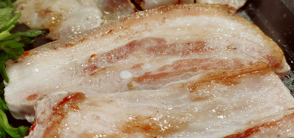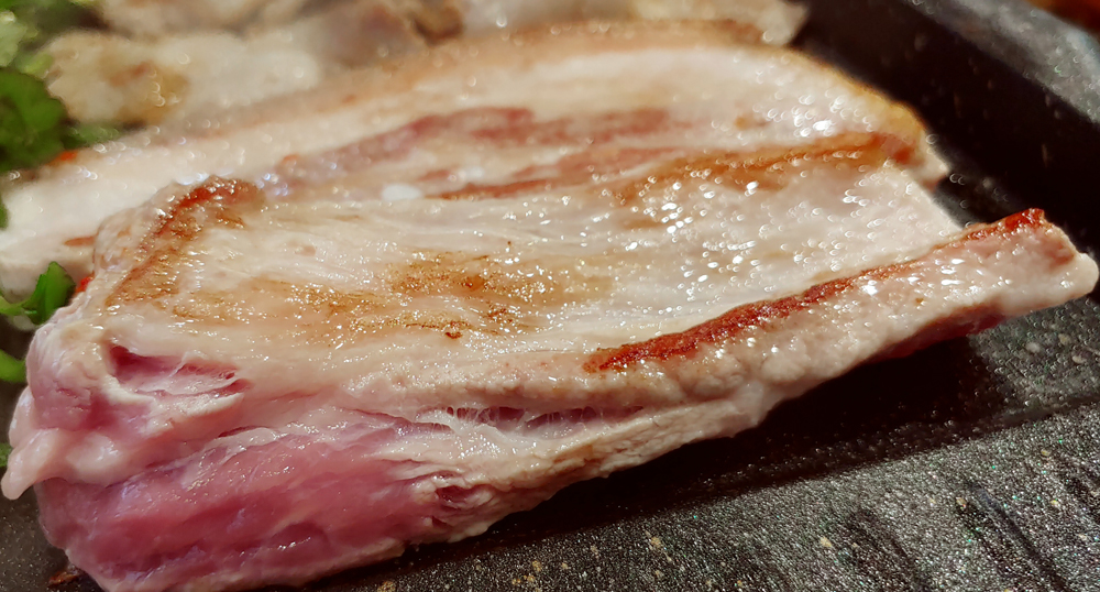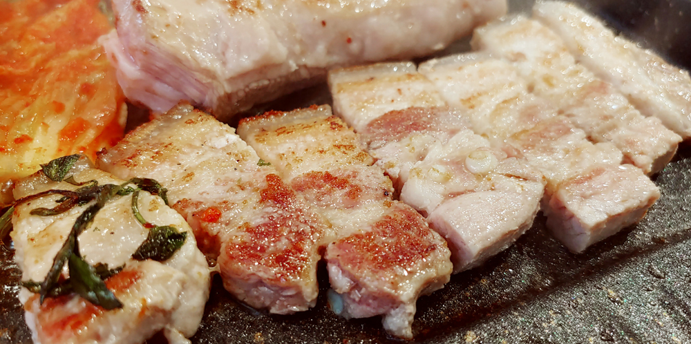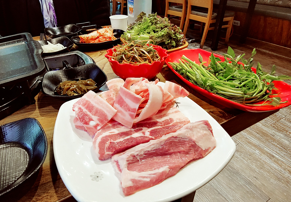오겹살과 대패삼겹살, 가브리살을 신선한 미나리와 함께