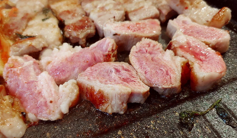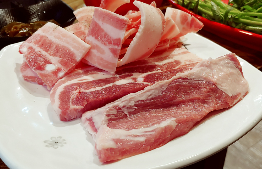 오겹살과 대패삼겹살, 가브리살을 신선한 미나리와 함께