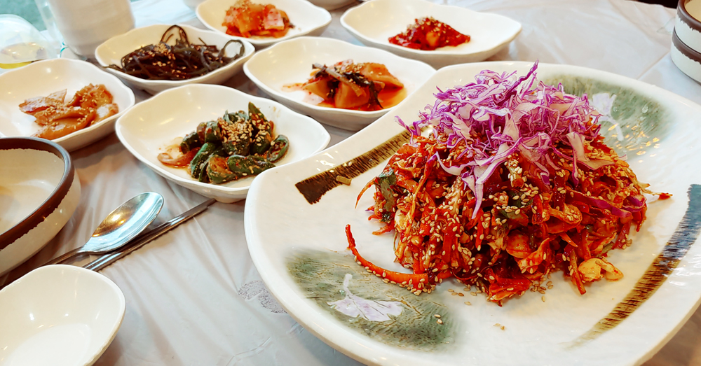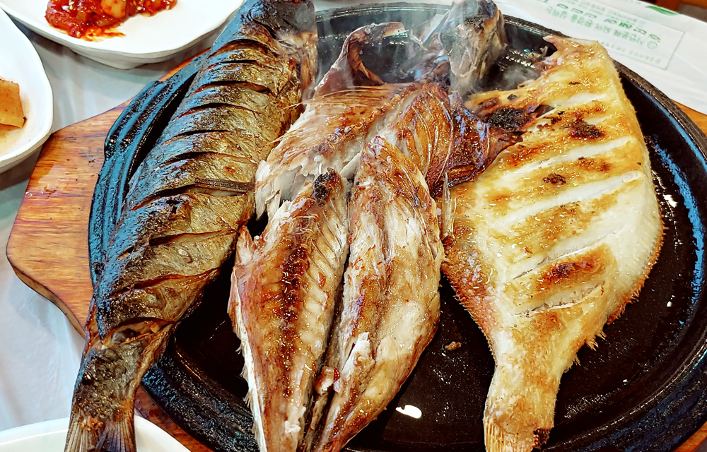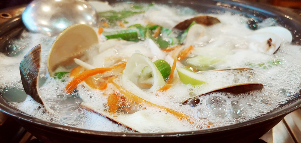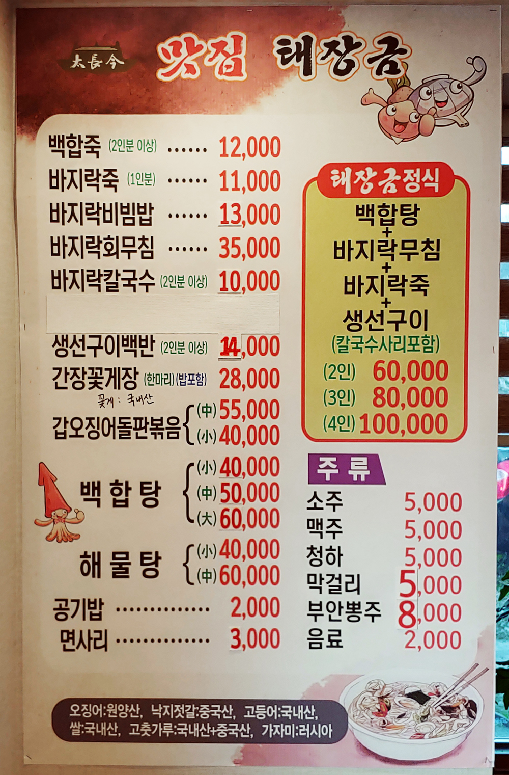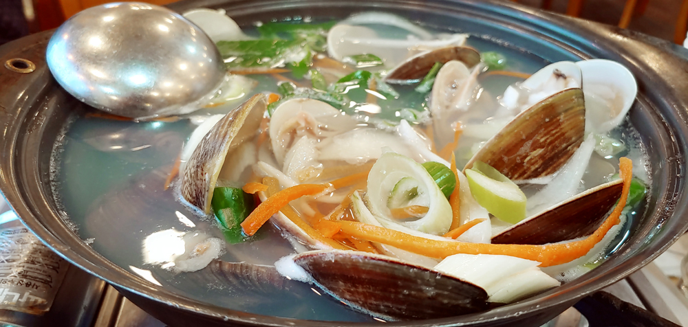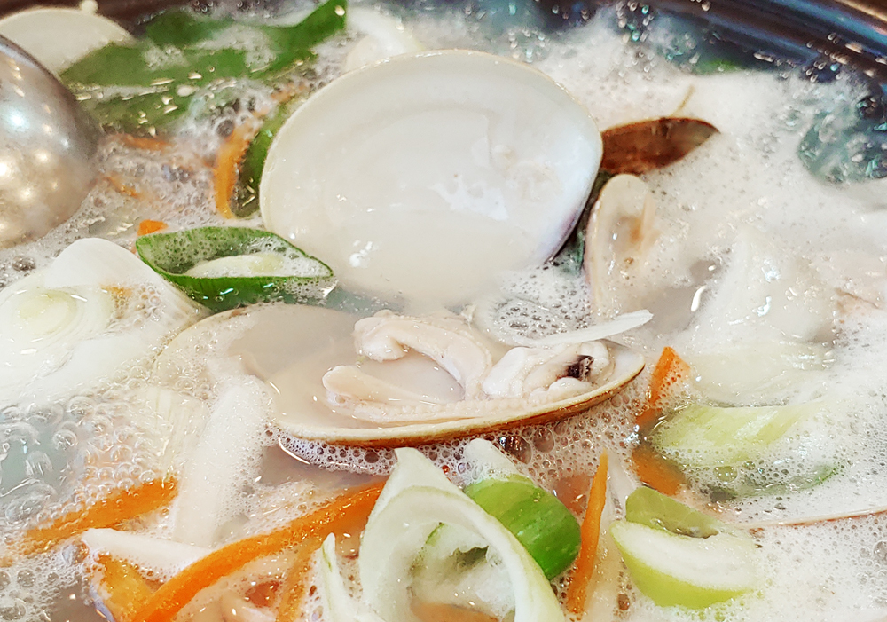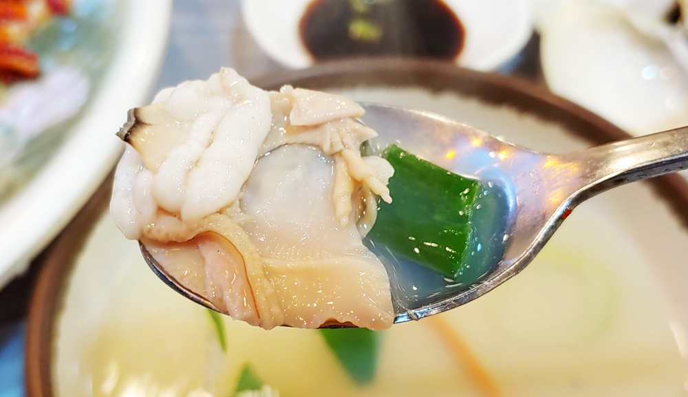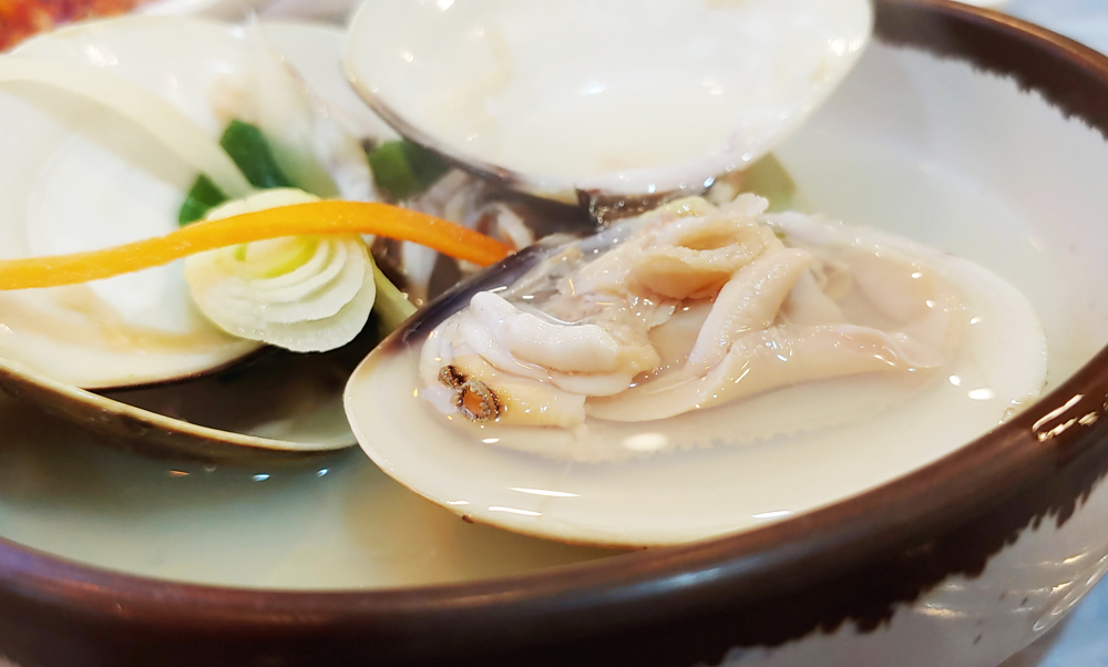바지락 무침과 바지락죽, 백합탕과 칼국수, 생선구이가 메인으로 나오는 태장금 정식입니다.