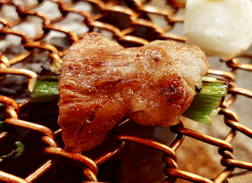 4가지 부위를 맛볼 수 있는 모리야끼 2인 세트와 키리모찌입니다.