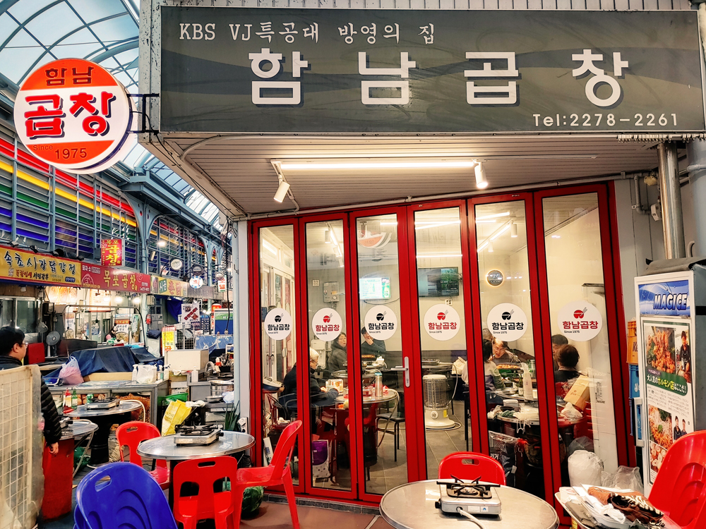 종로5가 종로신진시장에 자리한 돼지곱창 맛집 함남곱창입니다.