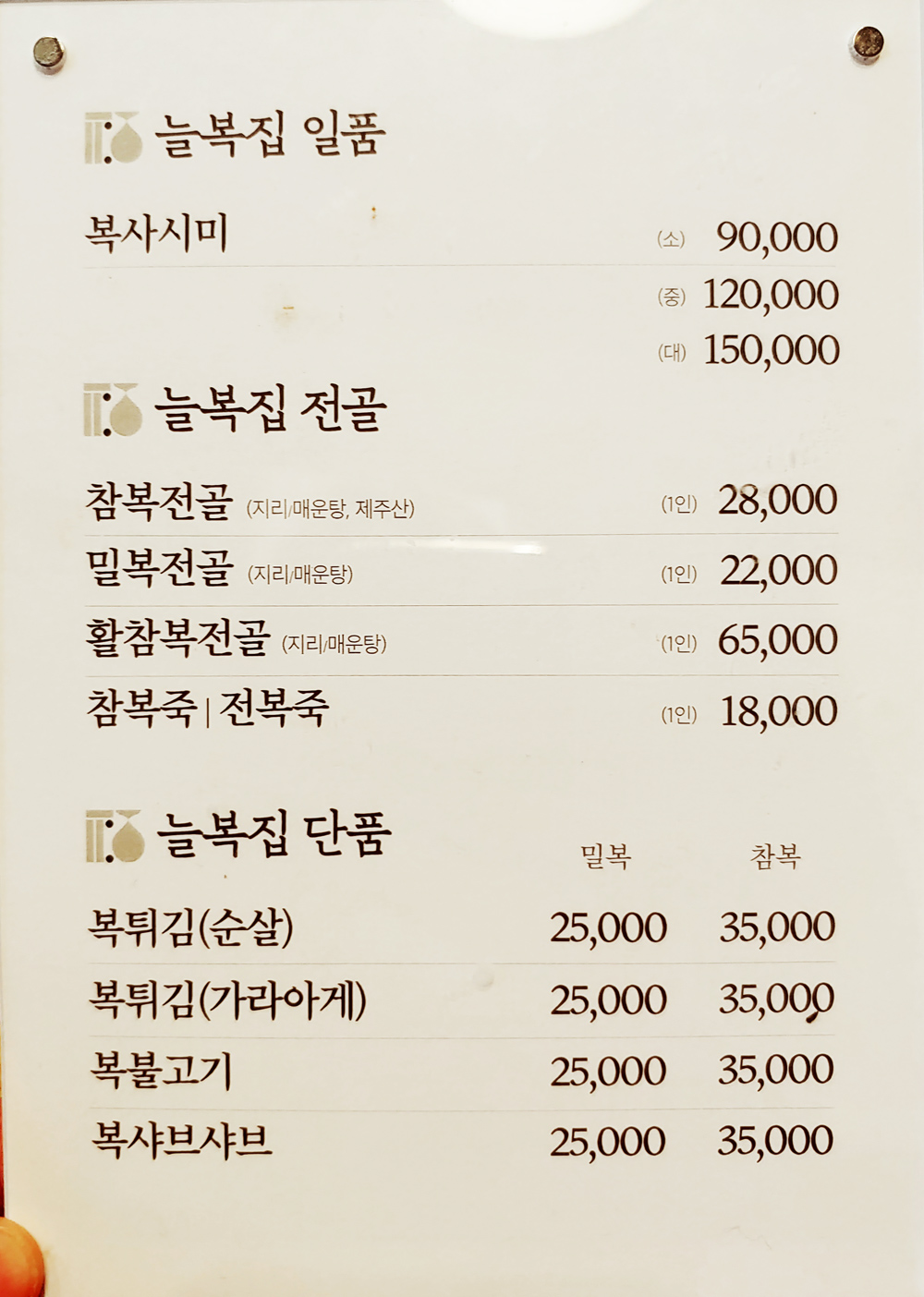 지하철 수서역에서 가까운 자곡동 교수마을 늘복집의 늘복 스페셜 코스요리 메뉴입니다.