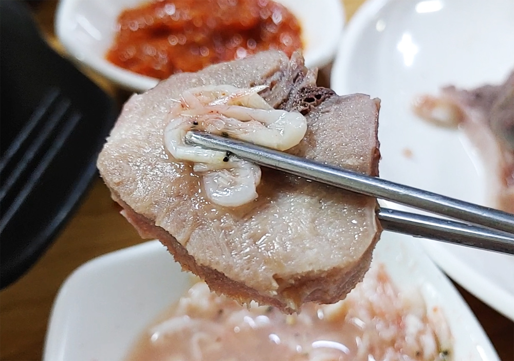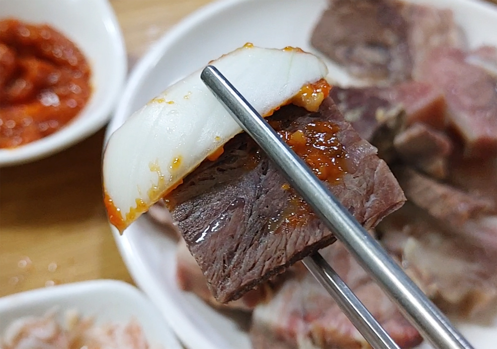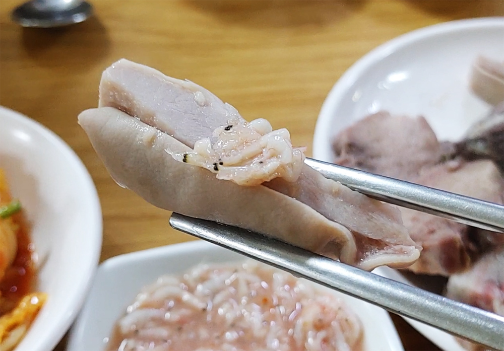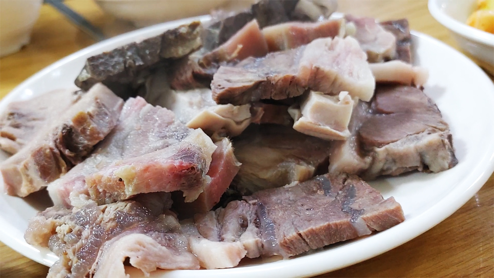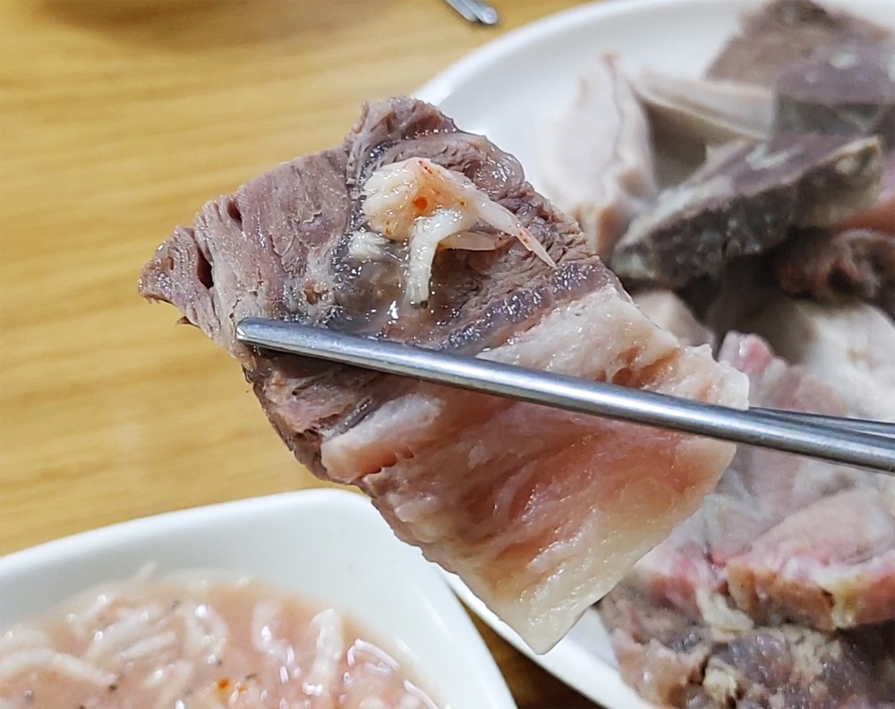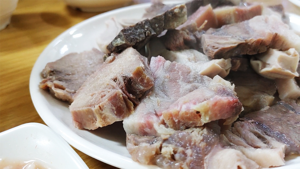 오래 삶아낸 부드럽게 머릿고기와 집에서 어머니가 한 것같은 계란말이입니다.