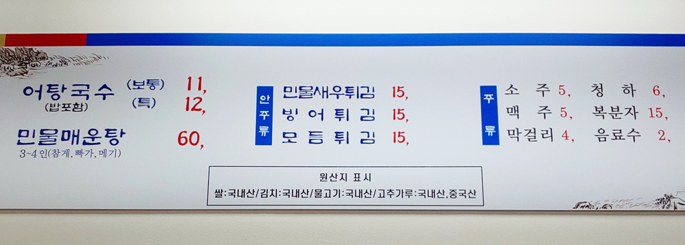 종로5가역 인접한 새 건물에 동강어탕국수라는 식당이 생겼습니다.