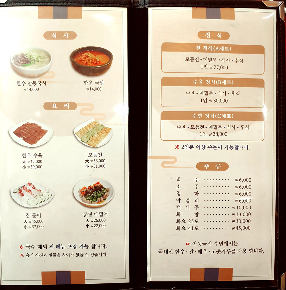 한우 수육과 봉평 메밀묵, 안동국시를 찰로 맛볼 수 있는 세트메뉴로 자극 없이 속이 편한 음식 맛을 보여주고 있습니다.