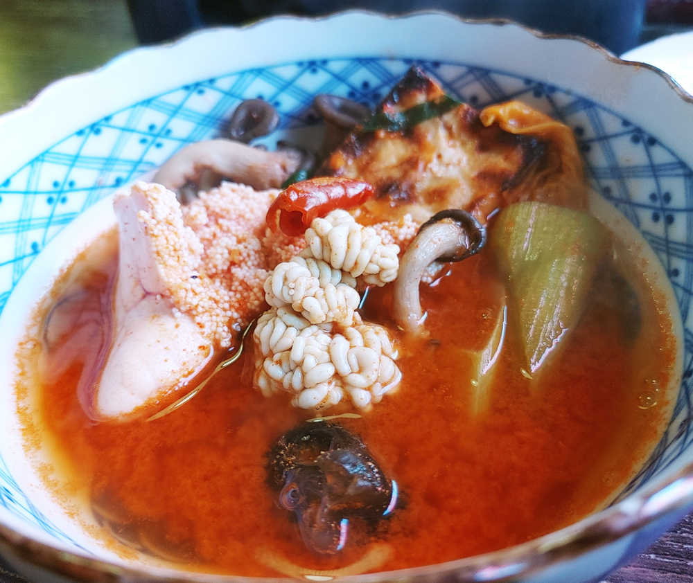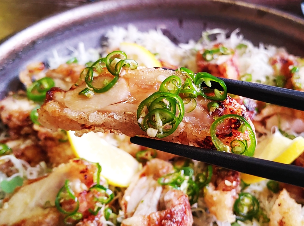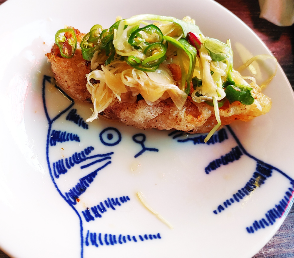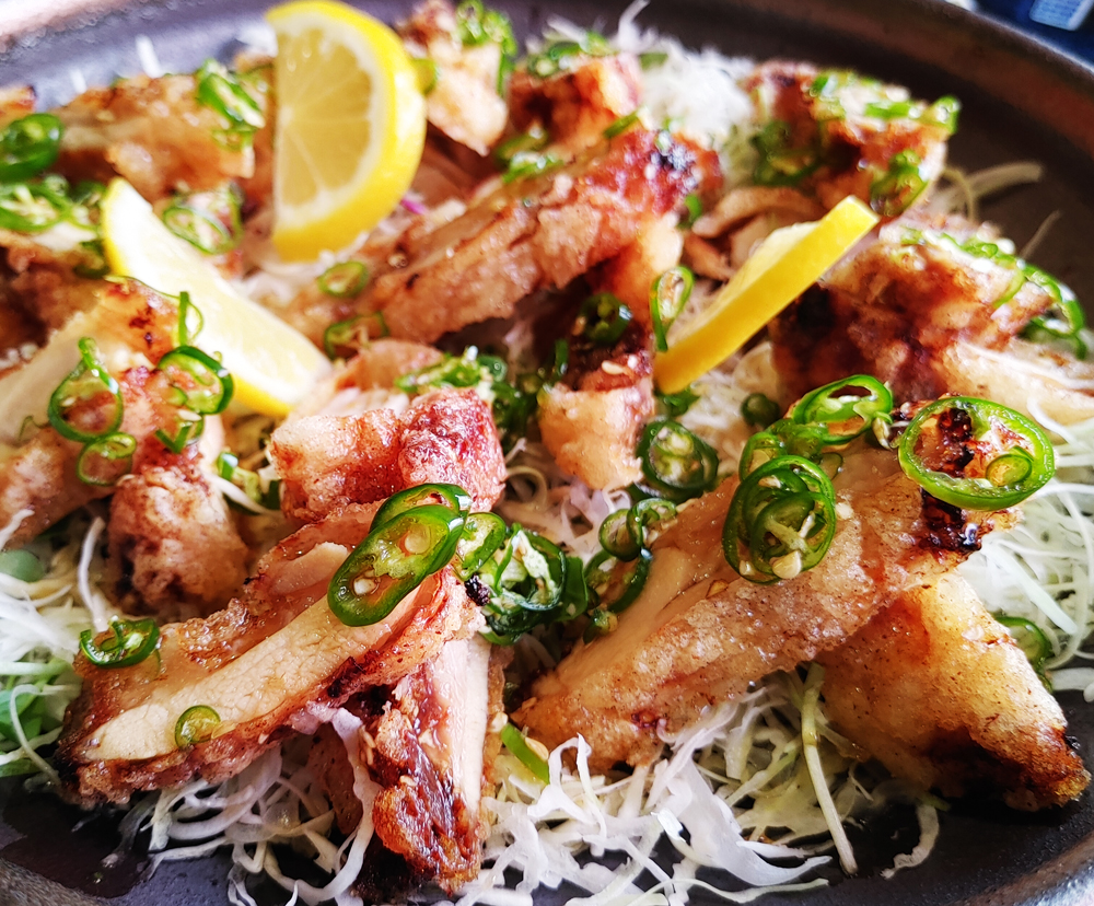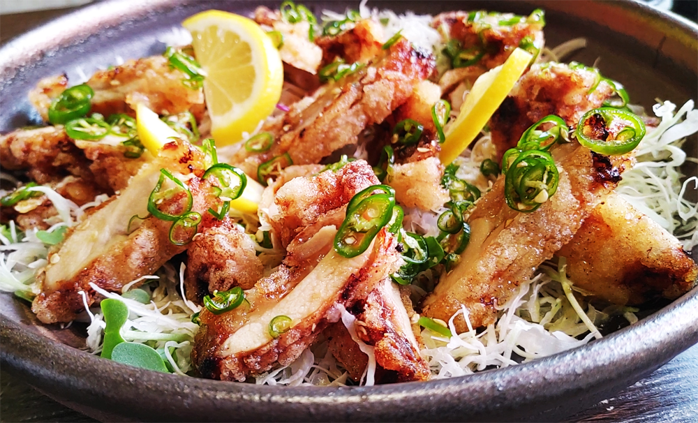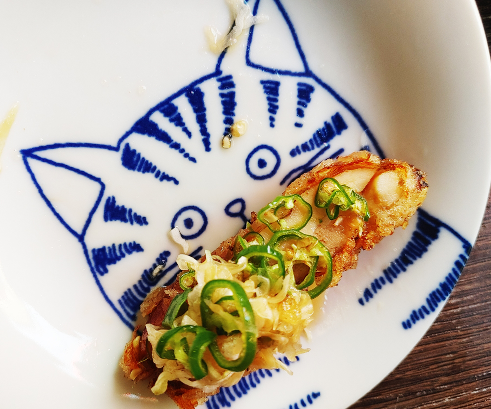 영등포구청역 당산동 성당에 인접한 심야식당 술집 옥산의 청양에서 온 닭튀김과 옥산 매콤 명란 나베입니다.