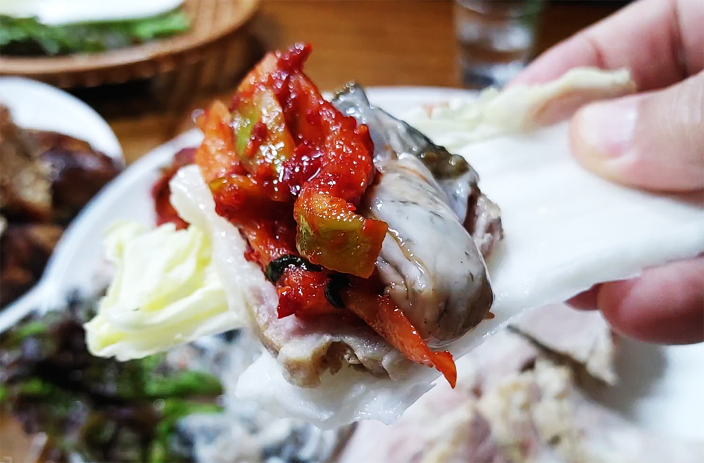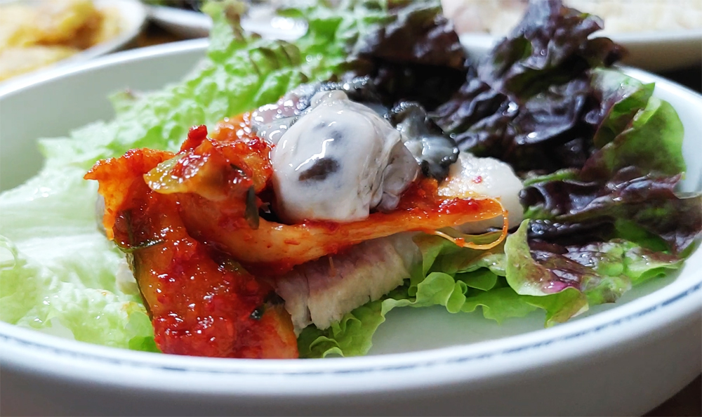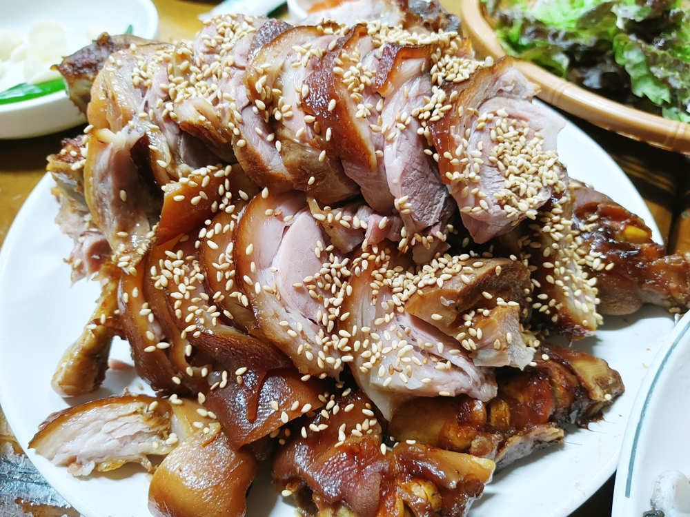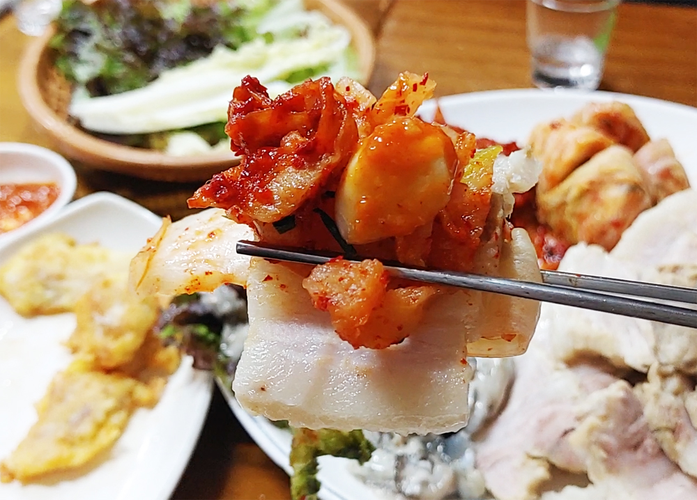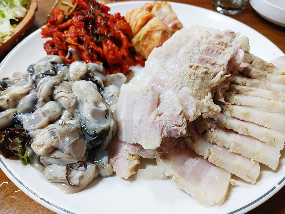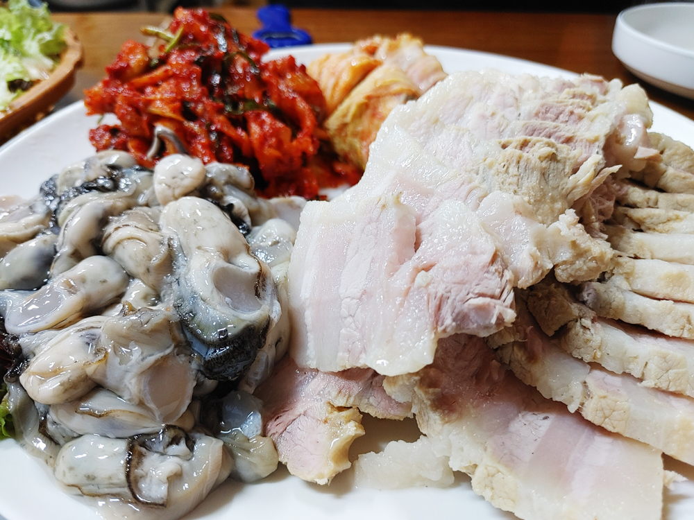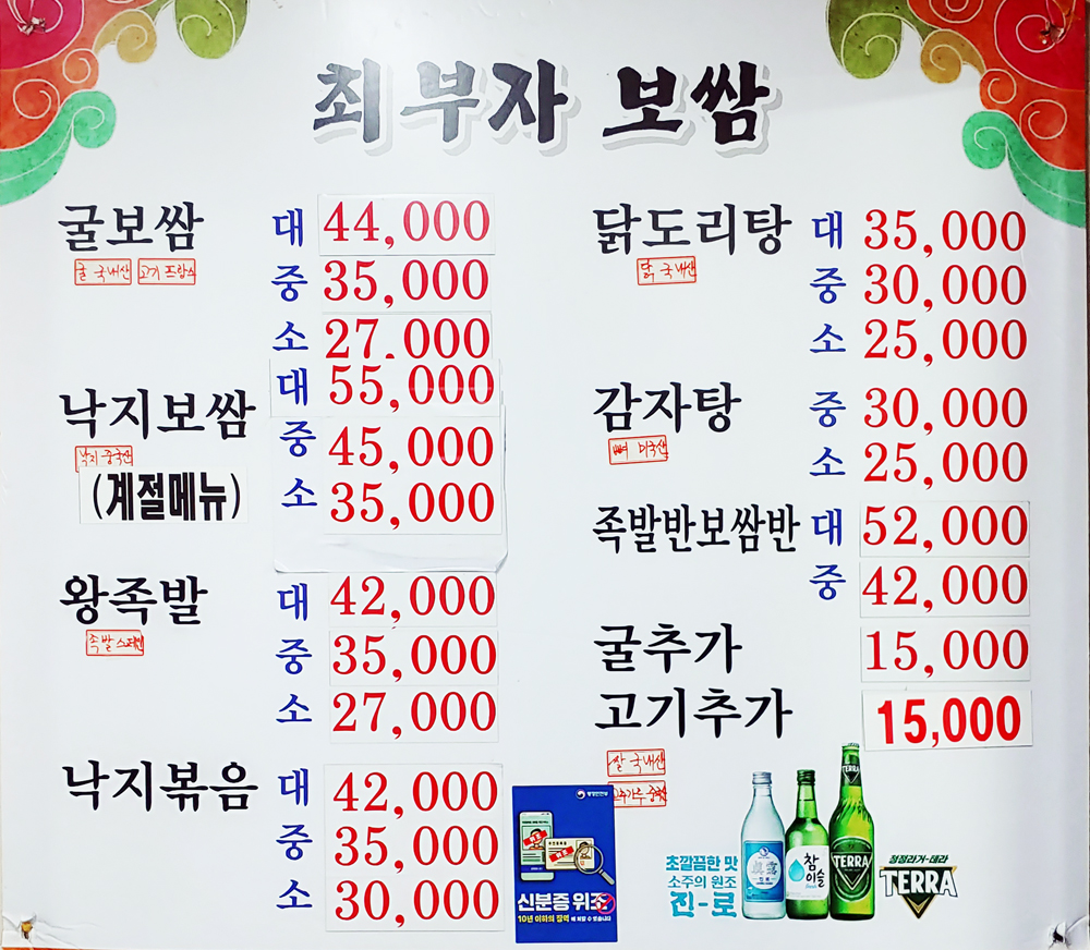 종로3가 보쌈골목의 최부자보쌈 식당의 굴보쌈 대짜와 왕족발 소짜입니다.