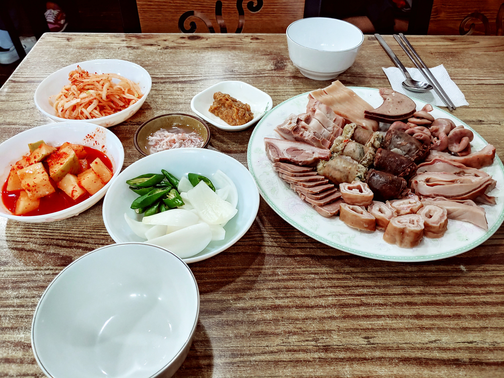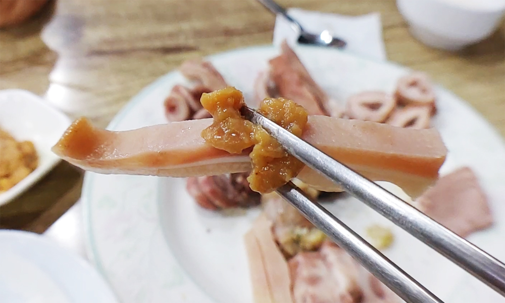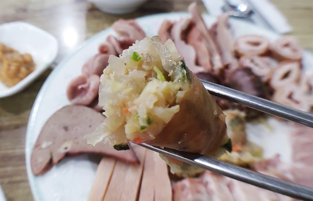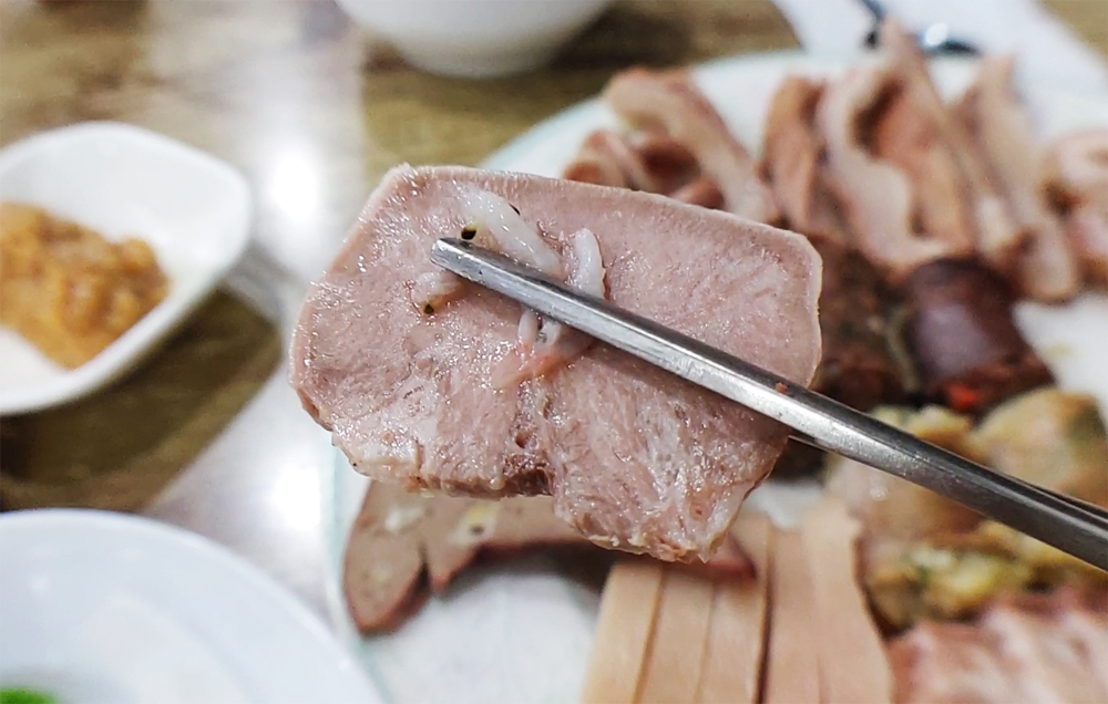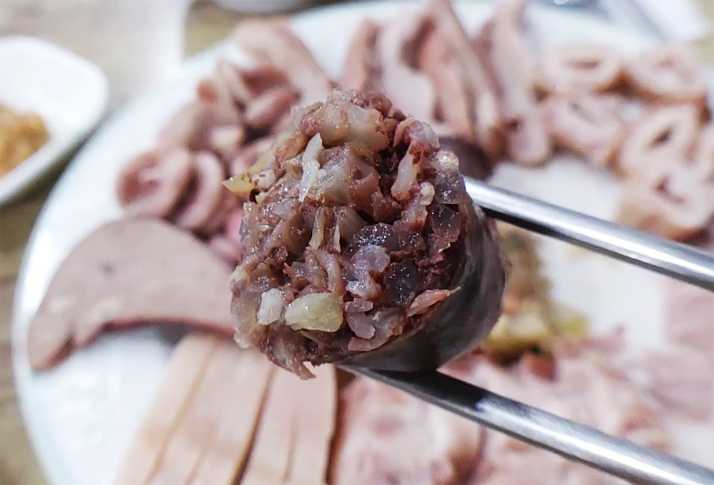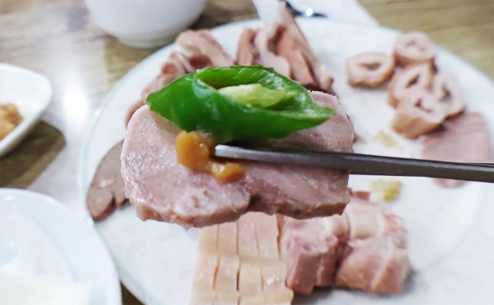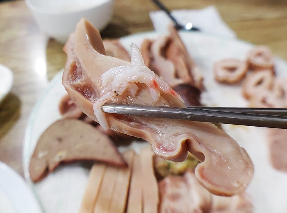 용산 용문시장에 자리한 삽다리순댓국의 머릿고기와 술국입니다.
