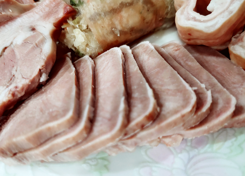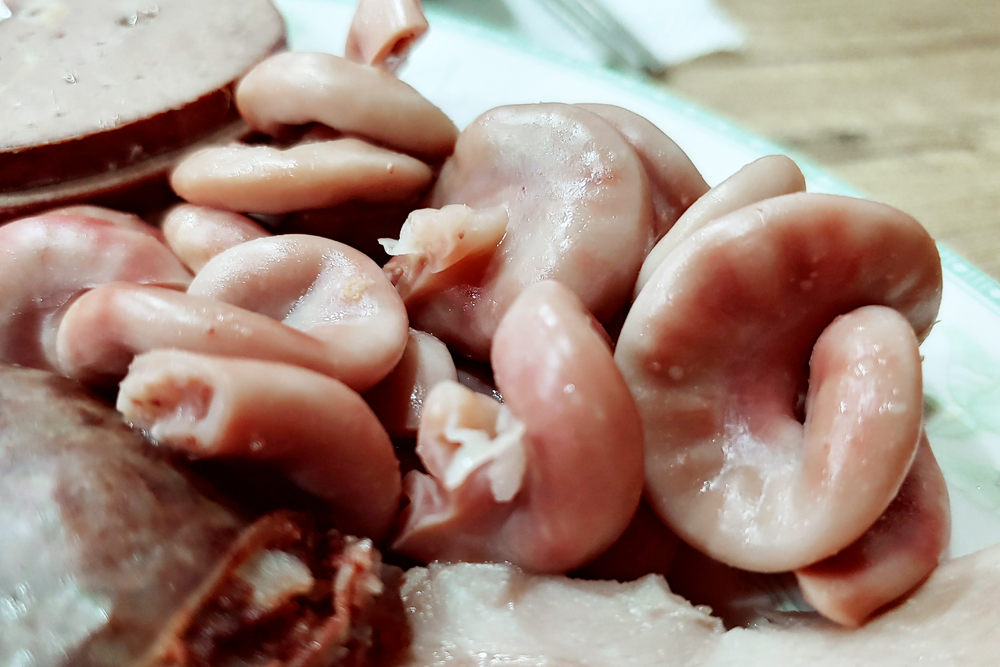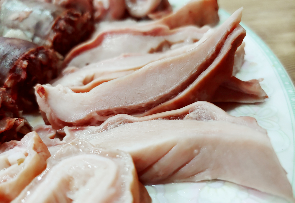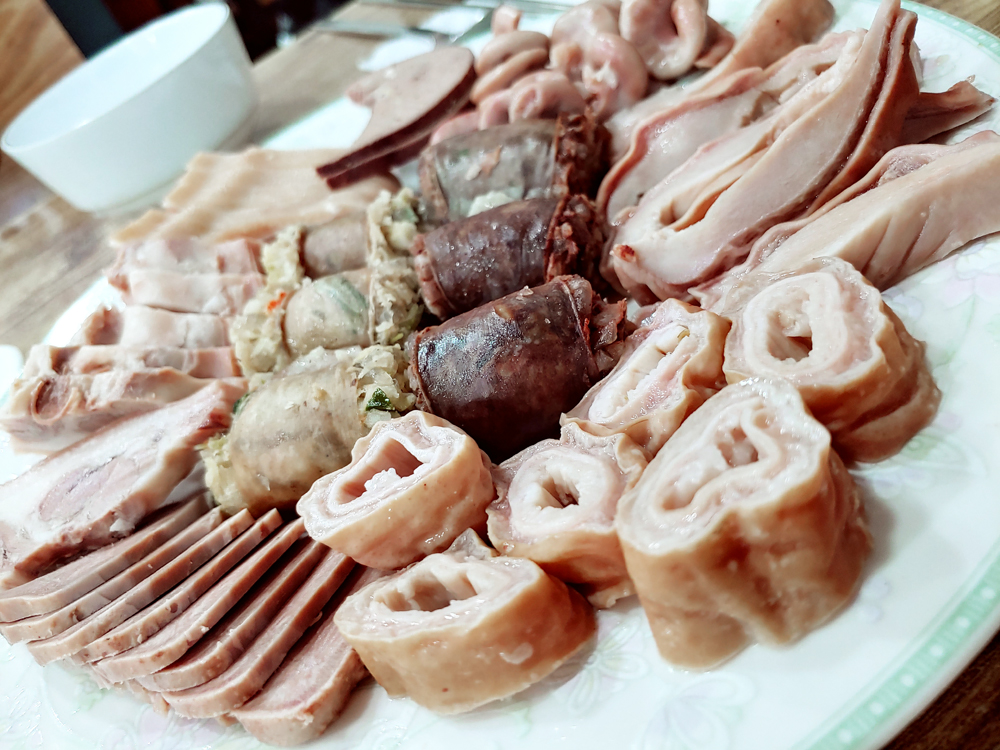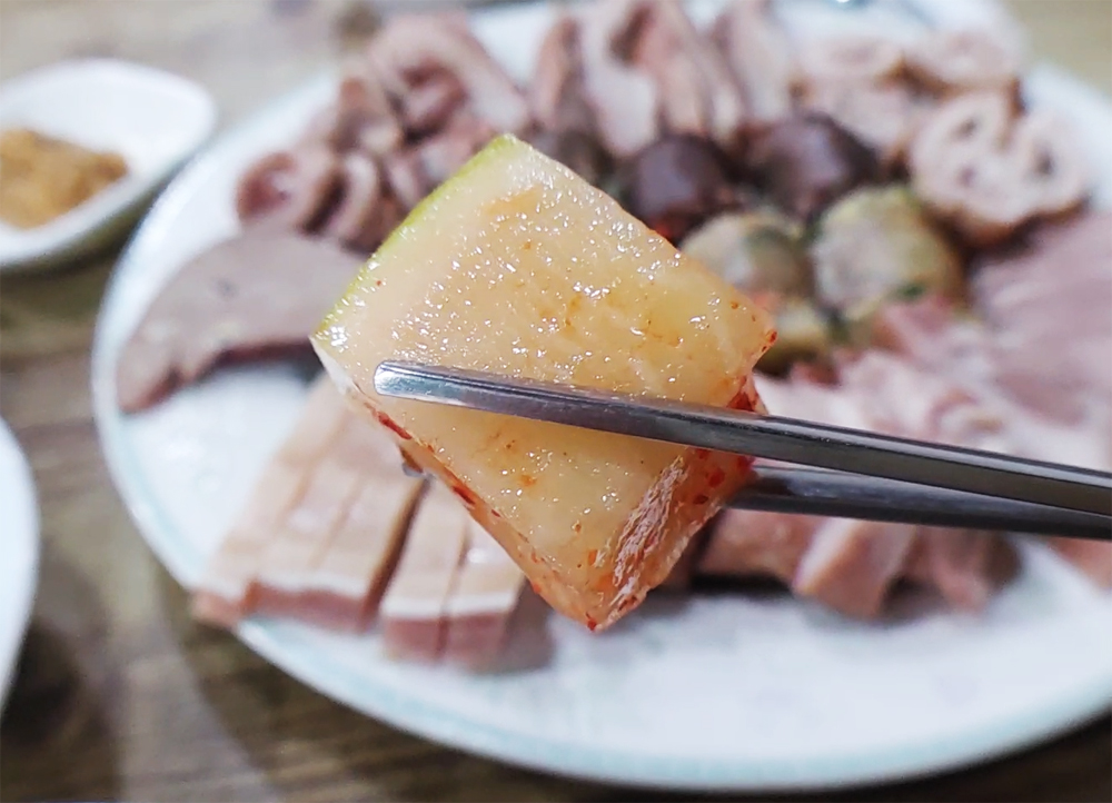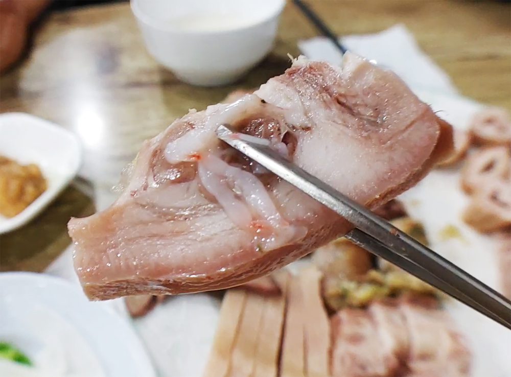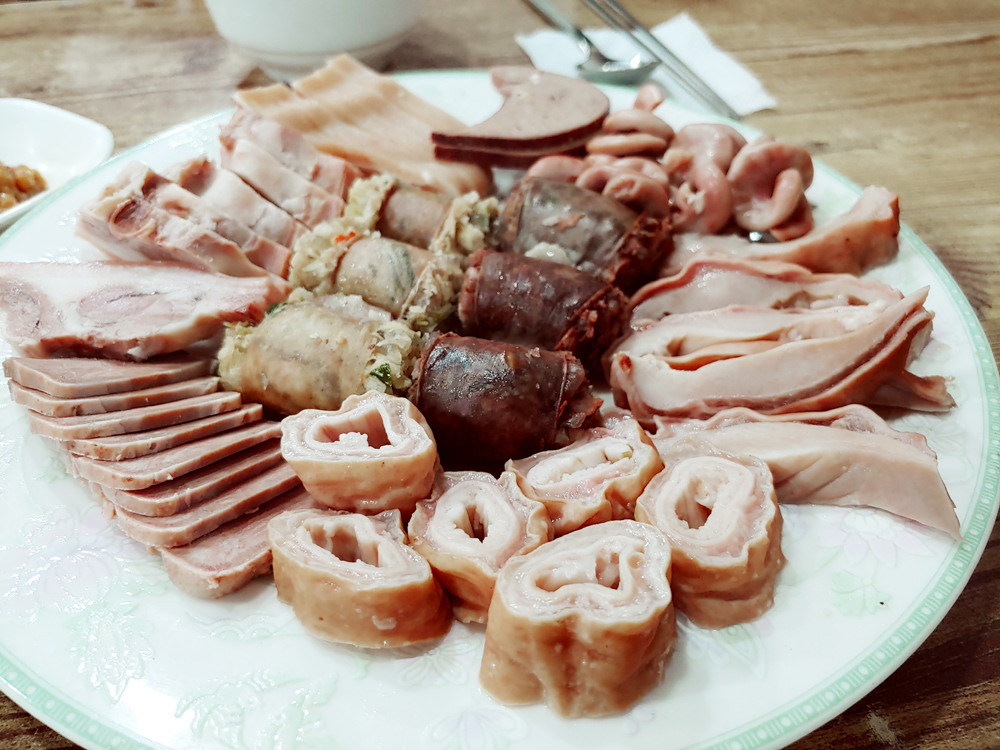 용산 용문시장에 자리한 삽다리순댓국의 머릿고기와 술국입니다.