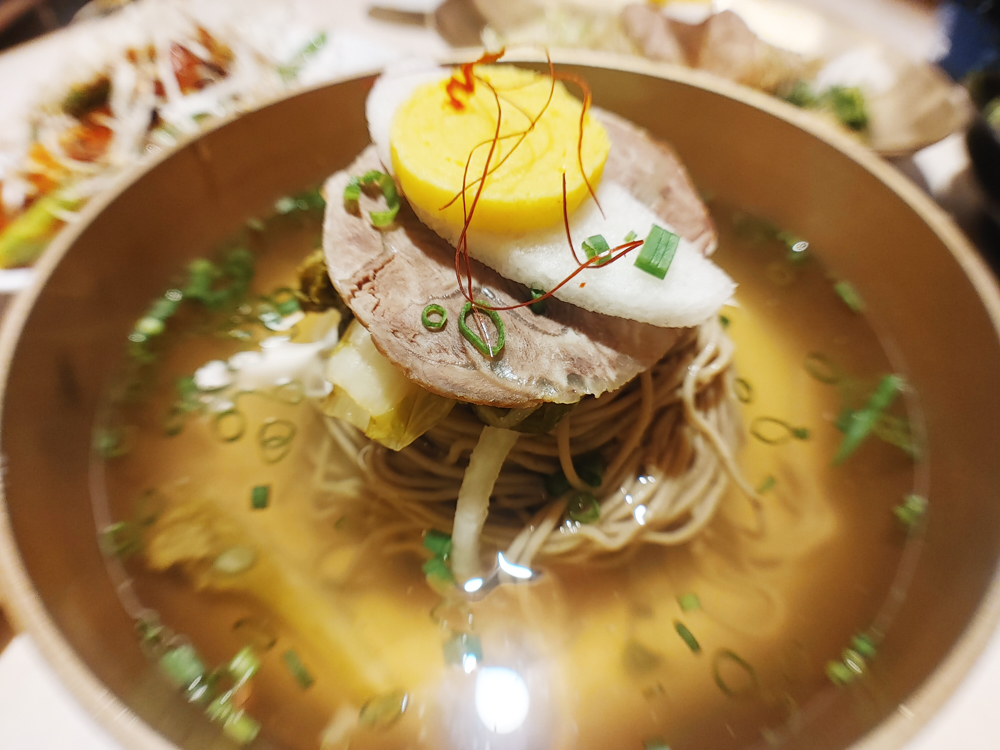 서울역에 인접한 한식 다이닝 동화고옥 서울점의 갈비살 수육과 꽈리고추 황태강정, 도미솥밥, 고옥냉면, 동화 골동면입니다. 고급스럽고 자극적이지 않은 궁중 음식의 맛을 느낄 수가 있습니다.