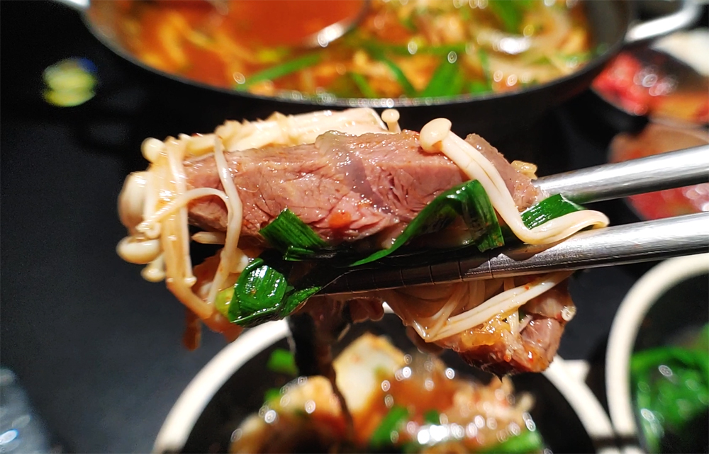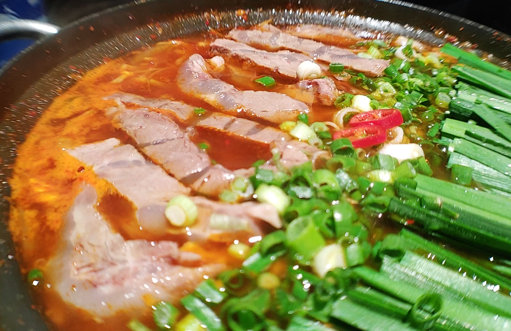 을지로3가역에서 가까운 주점 우주의 모둠수육과 얼큰아롱사태전골입니다. 양지, 스지,아롱사태 등의 담백한 수육 고기 맛을 볼 수가 있습니다.