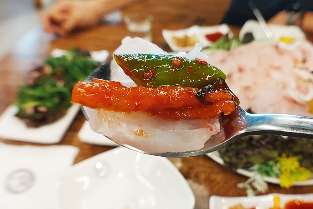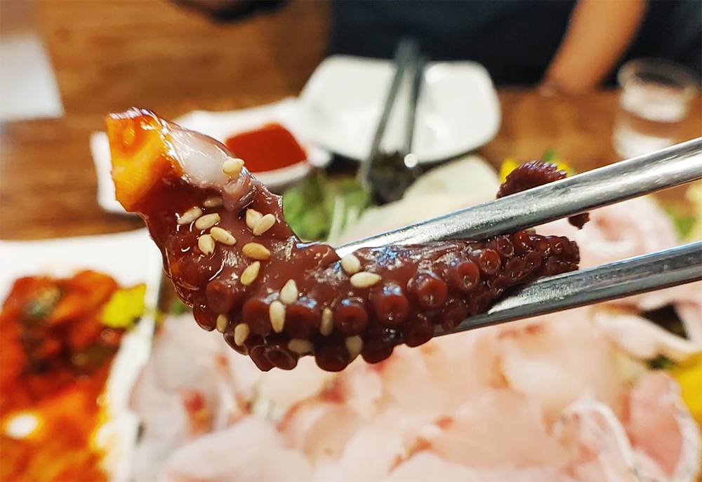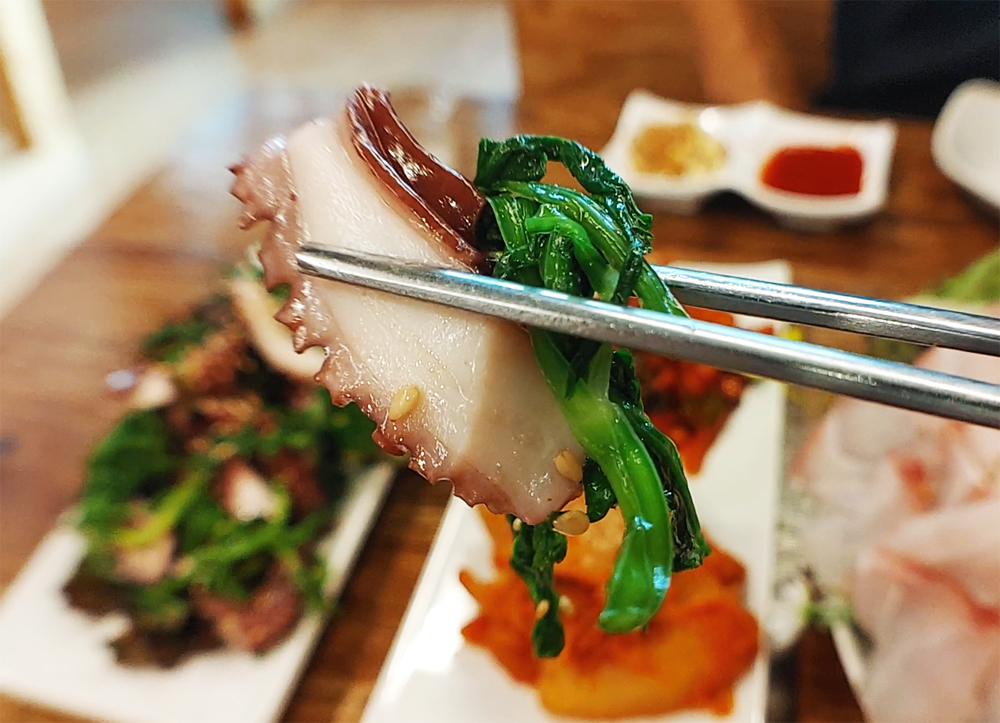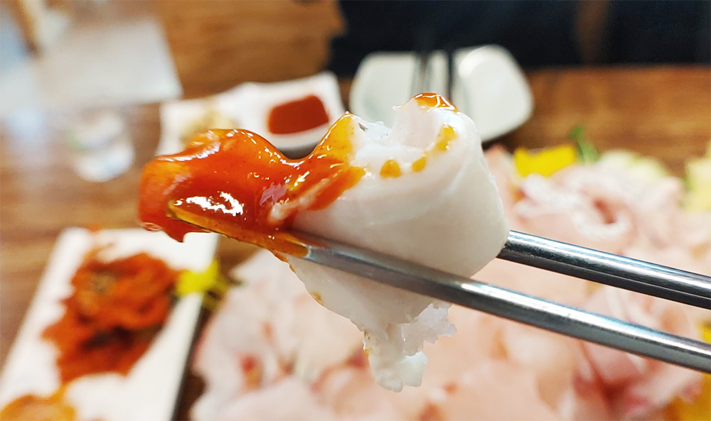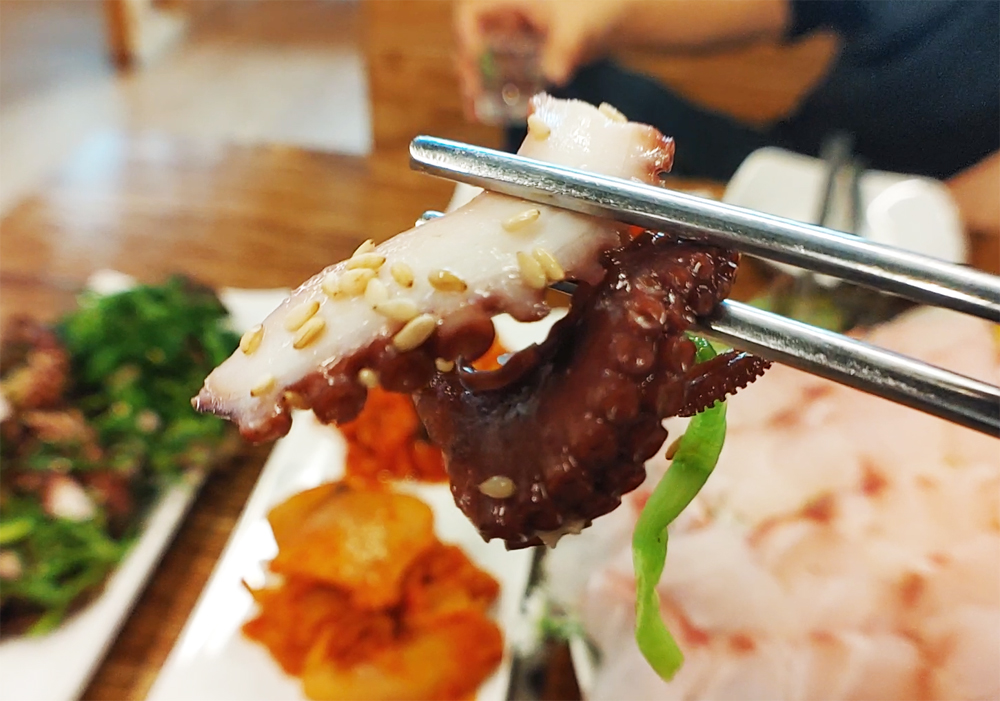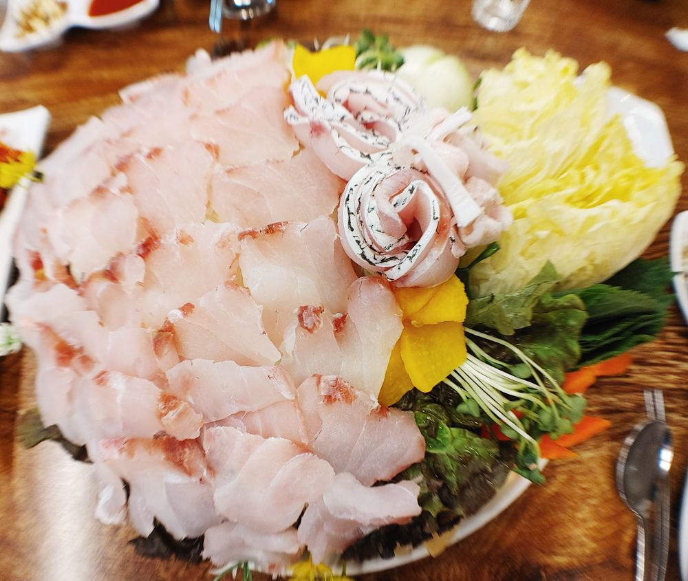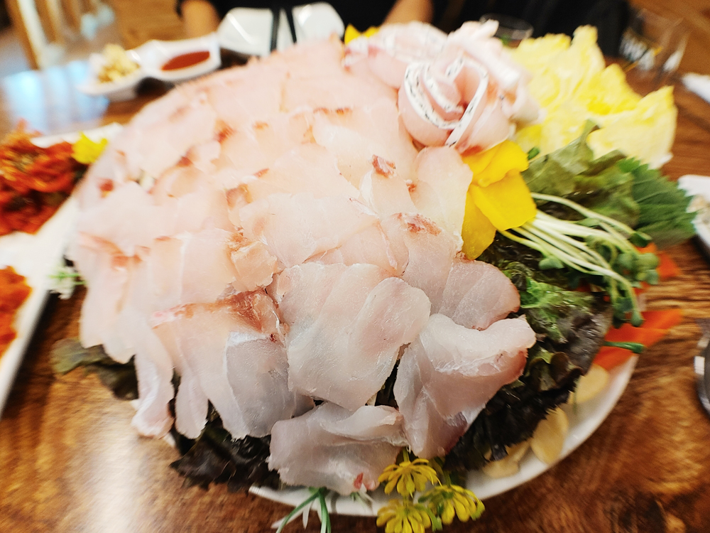 남도술상 마포용강점의 민어회와 싸비스 문어숙회 그리고 홍어회입니다.