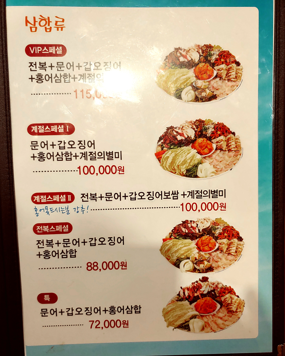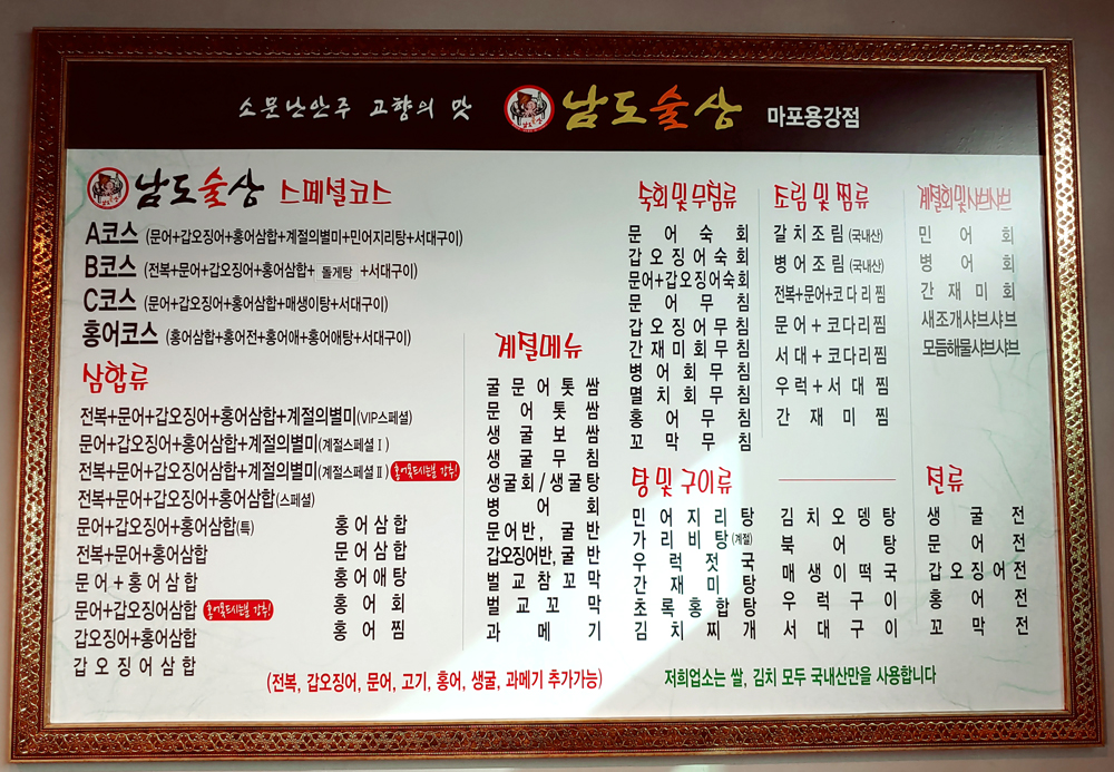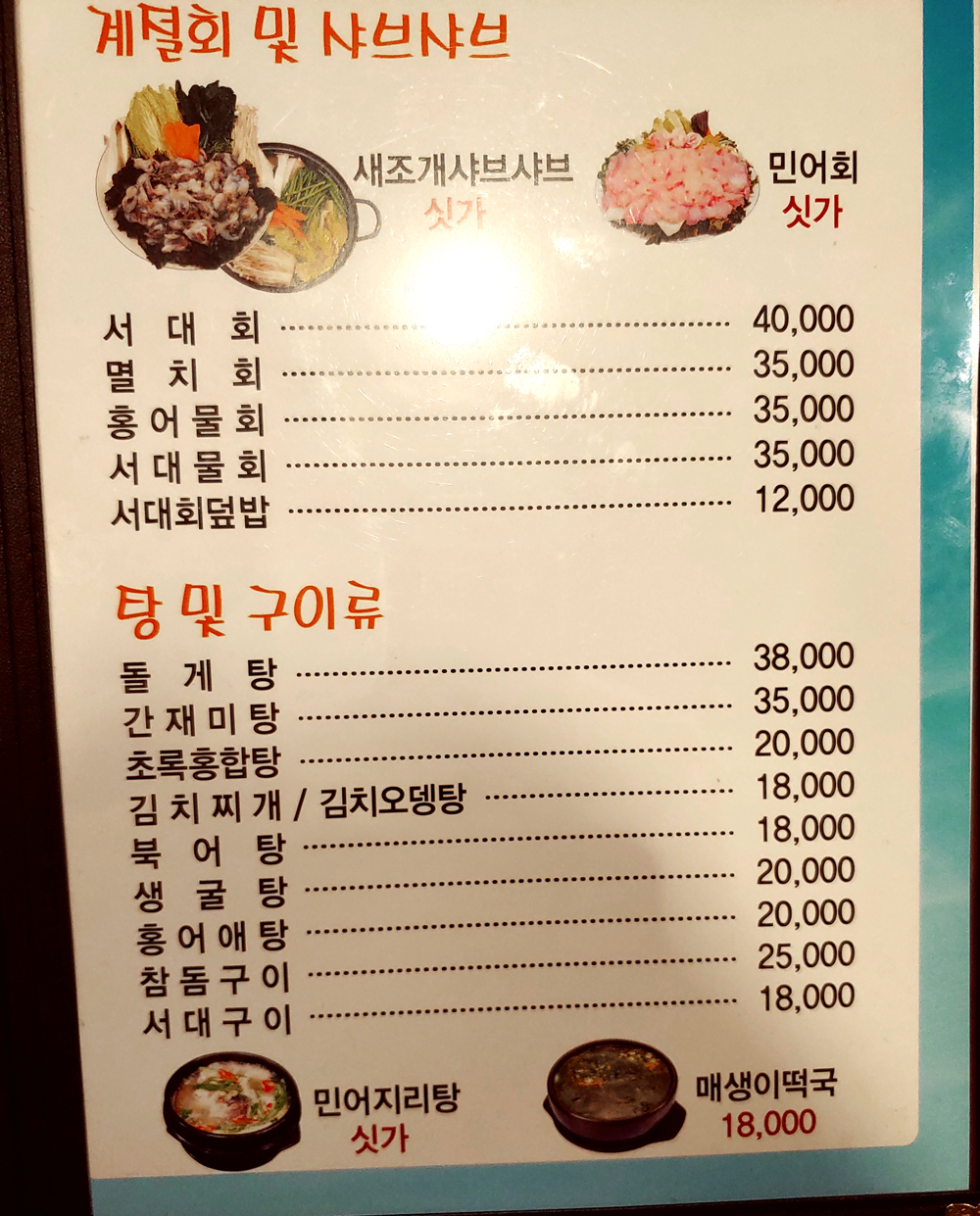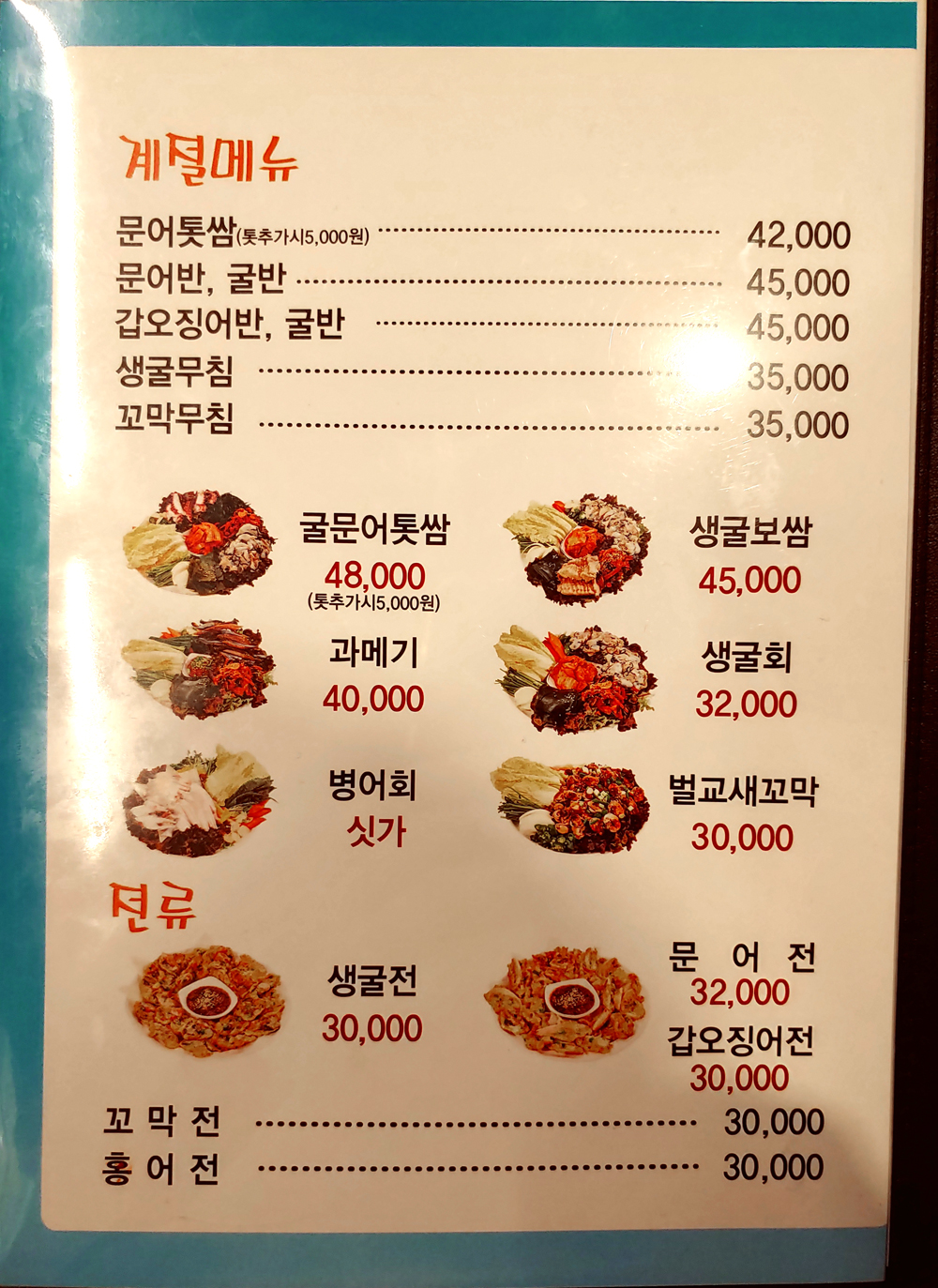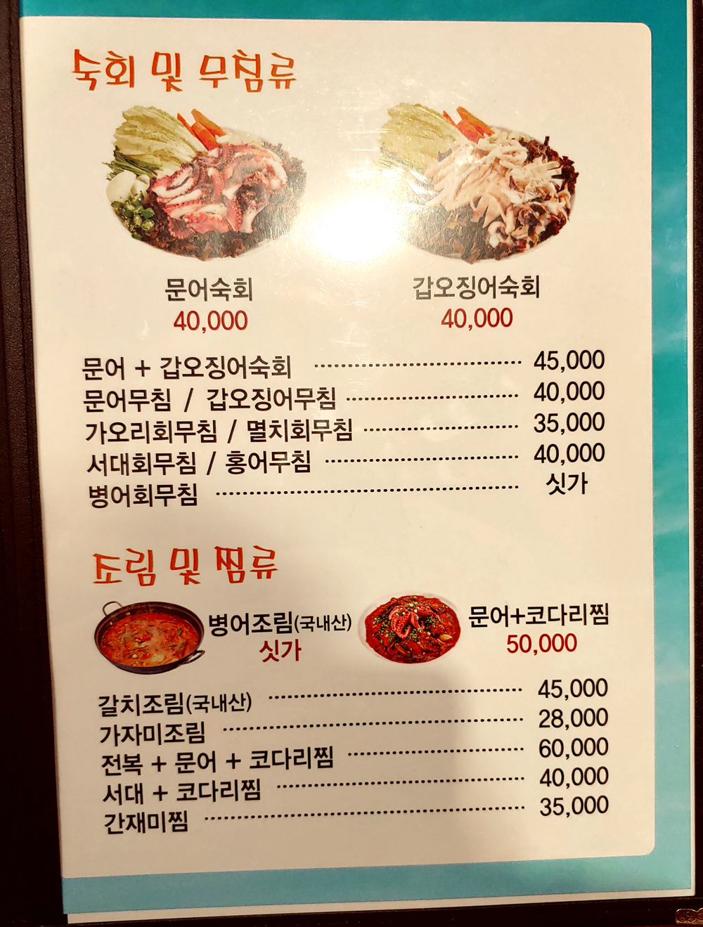 그외에 아주 다양한 해산물 메뉴들이 있습니다.