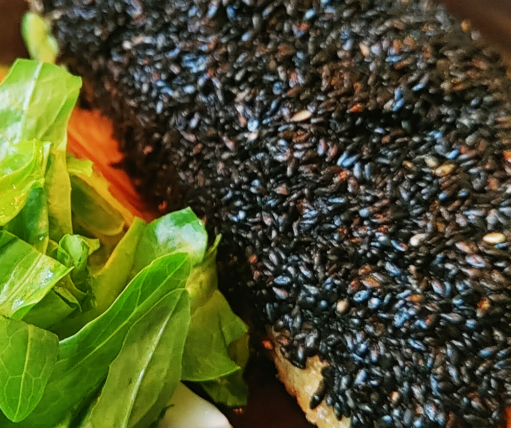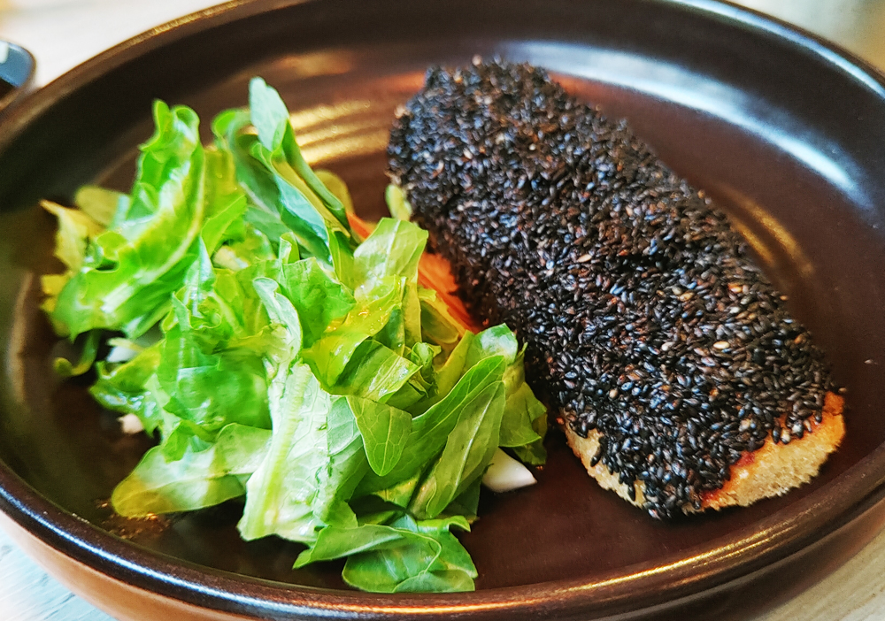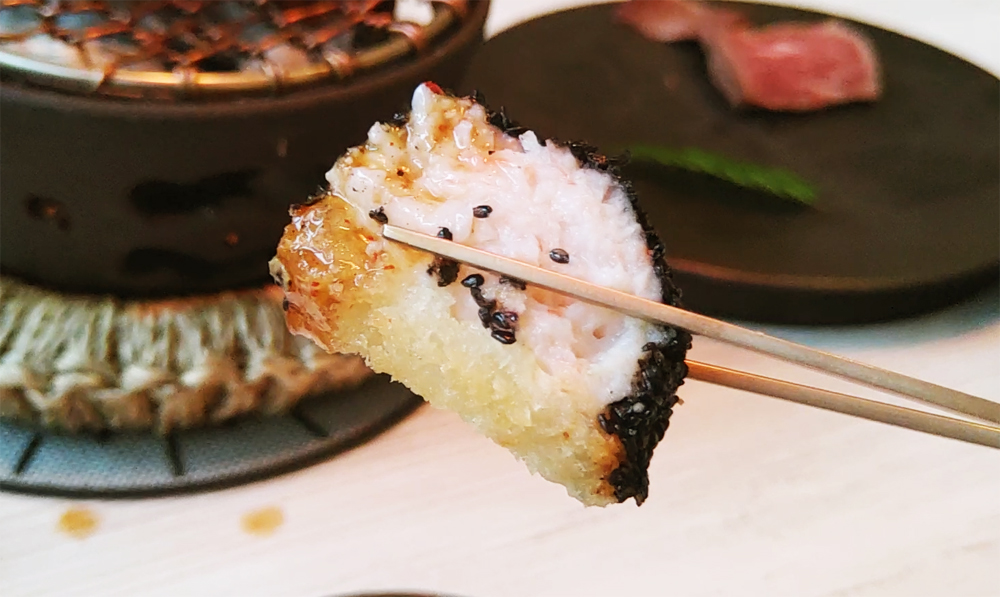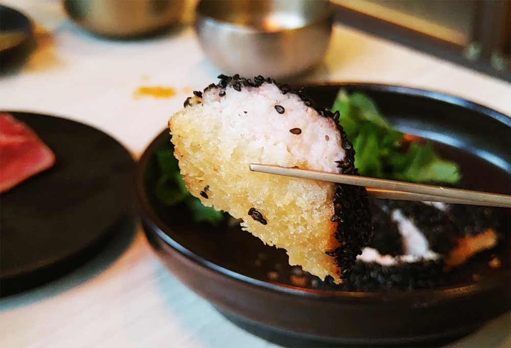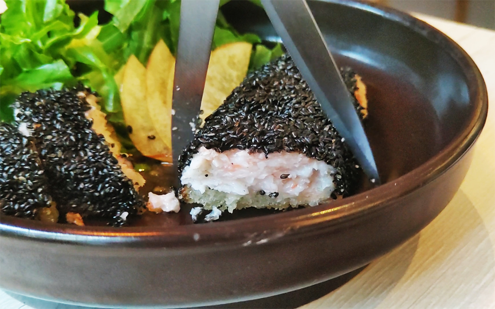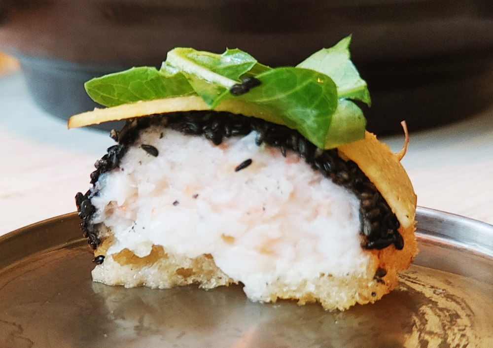 고소한 새우살이 가득한 흑임자 멘보샤도 좋습니다.