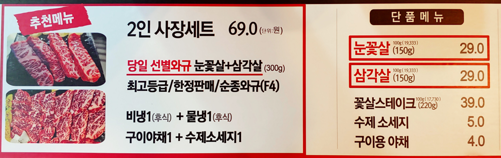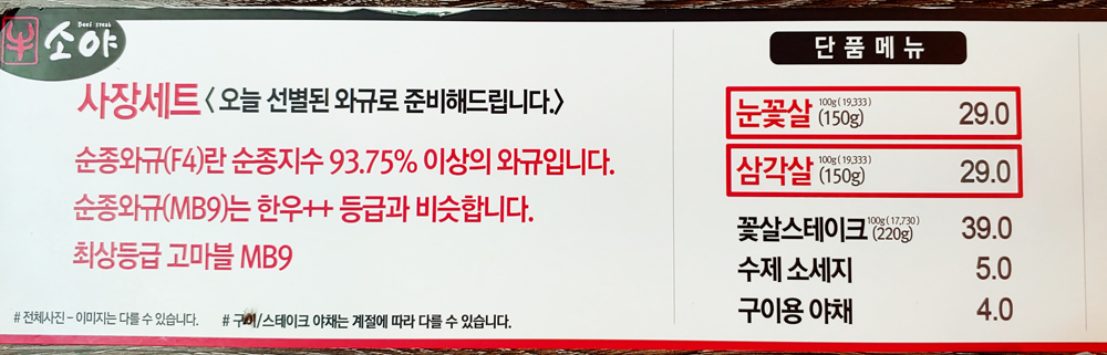 노량진에 있는 맛있는 와규 소고기 맛집 소야의 2인 사장세트입니다.
