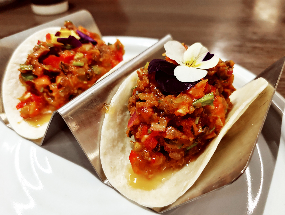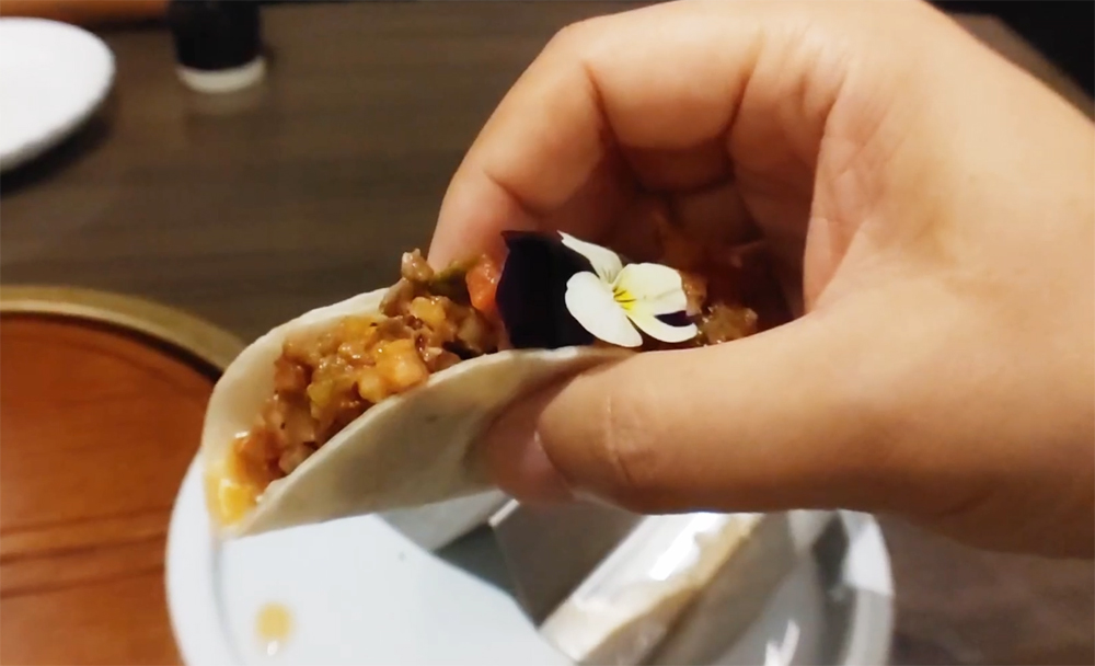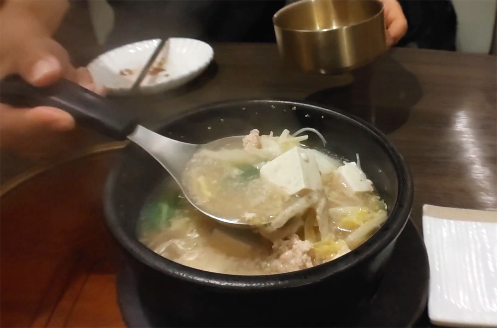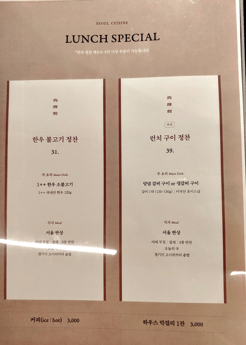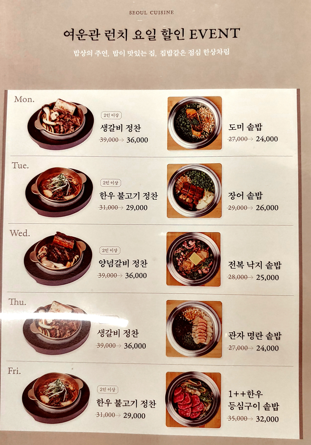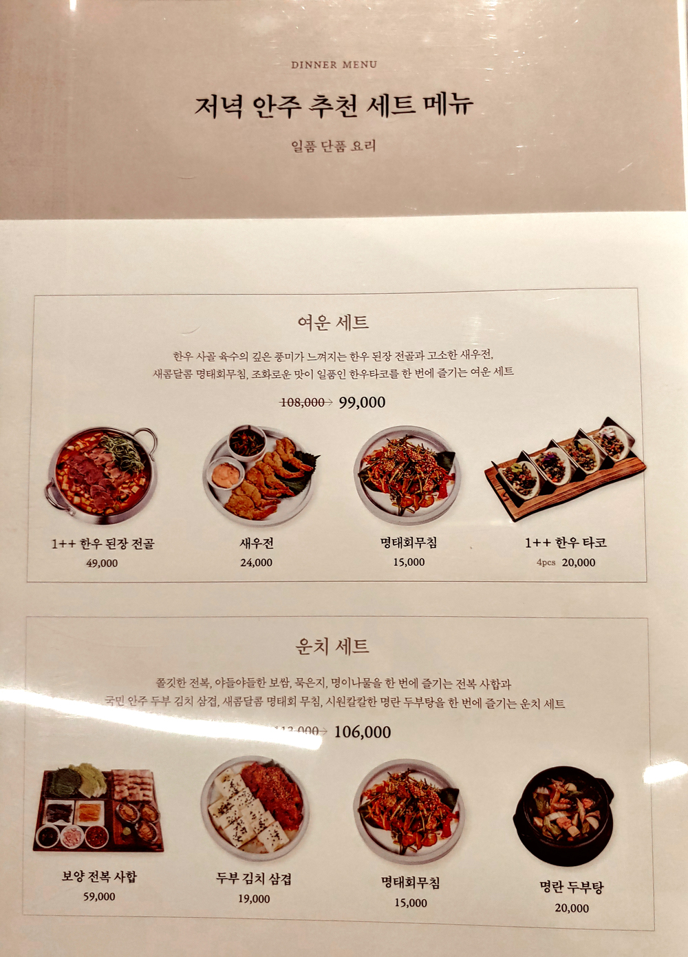 여의도 농협재단 빌딩 푸드 스퀘어에 자리한 서울요리 식당 여운관의 1++한우타코와 명란두부탕, 소꼬리구이입니다.